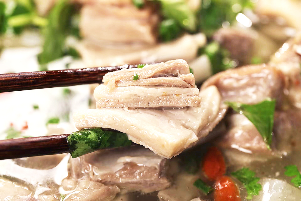 羊蝎子炖到酥烂,用手轻轻一掰,骨肉轻易分离,肉质醇香入味,滑嫩而不腻,在唇齿间跃动!
