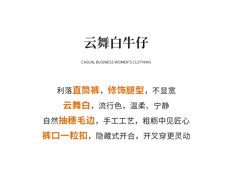 【商场同款】CNT6339 “ 云舞白牛仔 ” 高支棉牛仔柔软舒适 自然抽穗毛边时髦有调性