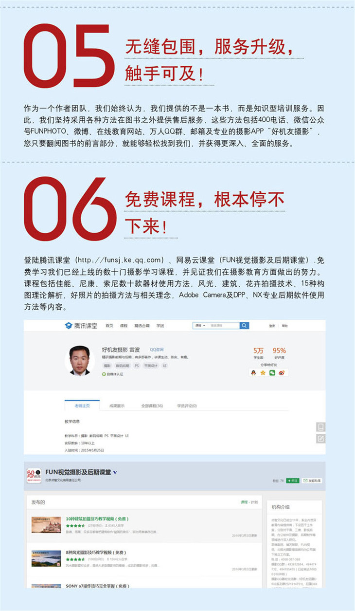 本书是一本全面解析索尼α6300/α6000微单相机强大功能、实拍设置技巧及各类拍摄题材实战技法的实用类书籍,将官方手册中没讲清楚的内容以及抽象的功能描述,以实拍测试、精美照片展示、文字详解的形式讲明白、讲清楚。