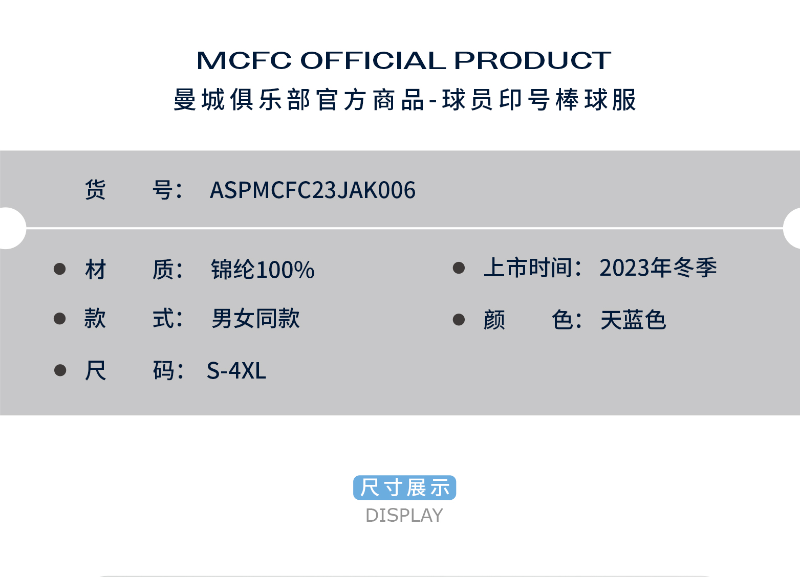 曼城俱乐部官方商品 | 棒球服棉服签名印号外套德布劳内球迷周边