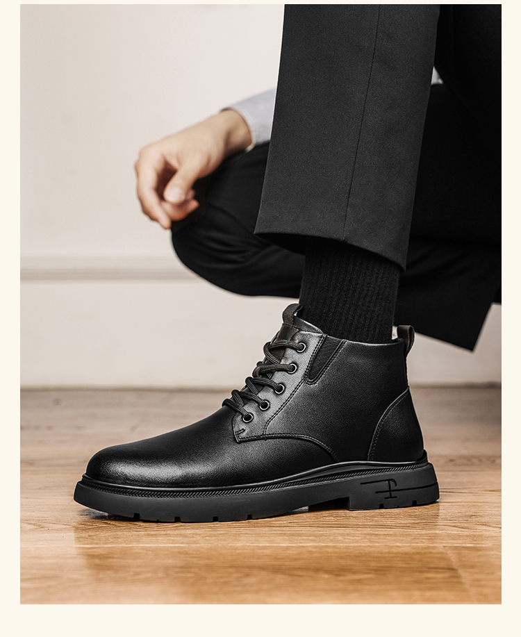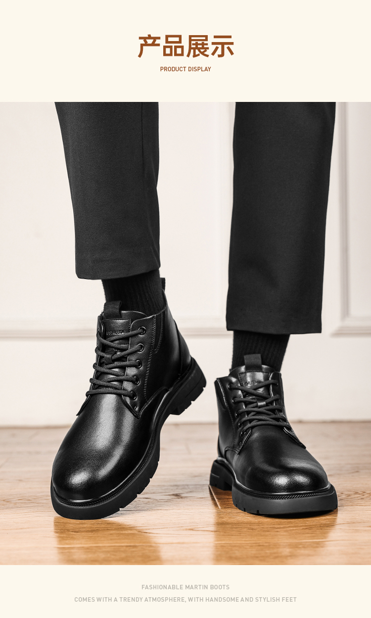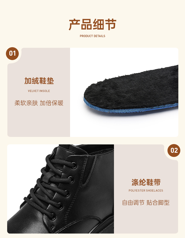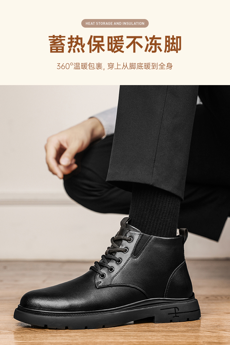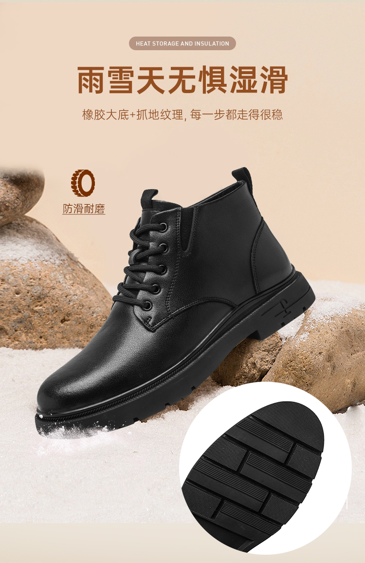 【实付满399送保温杯】【经典加绒中帮棉鞋】加厚保暖棉鞋 防滑系带马丁靴 防风耐折皮鞋XM401