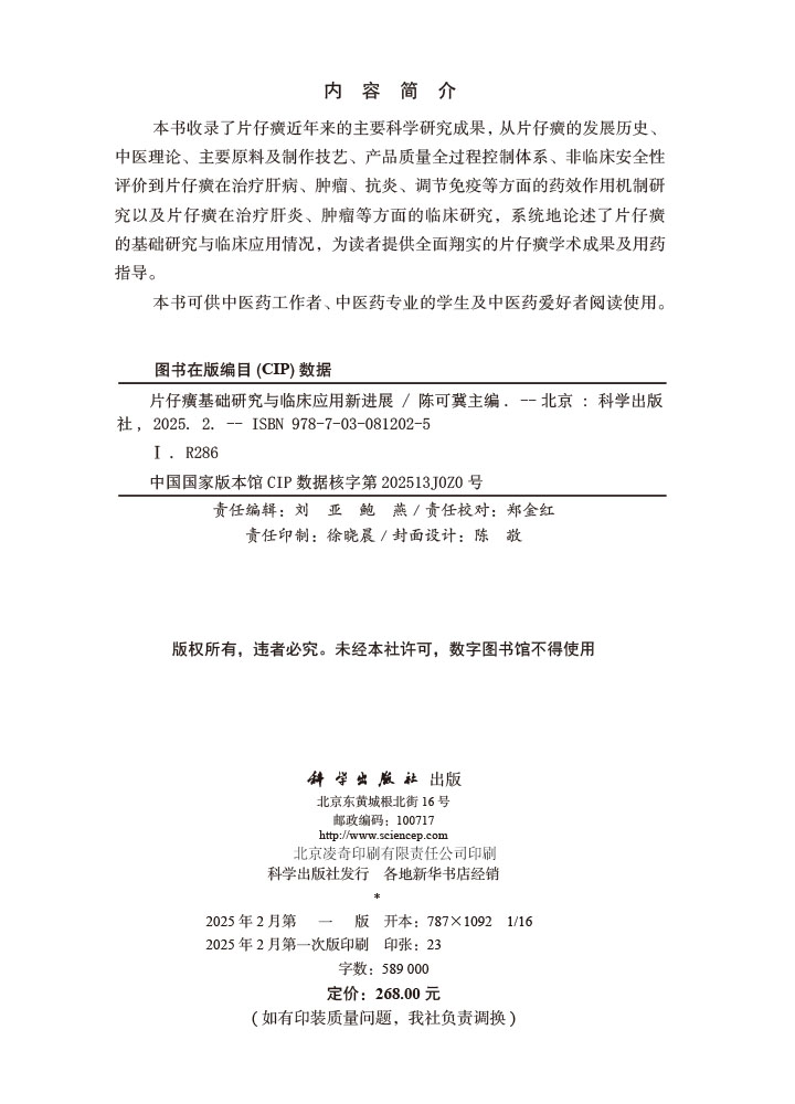 书名:片仔癀基础研究与临床应用新进展