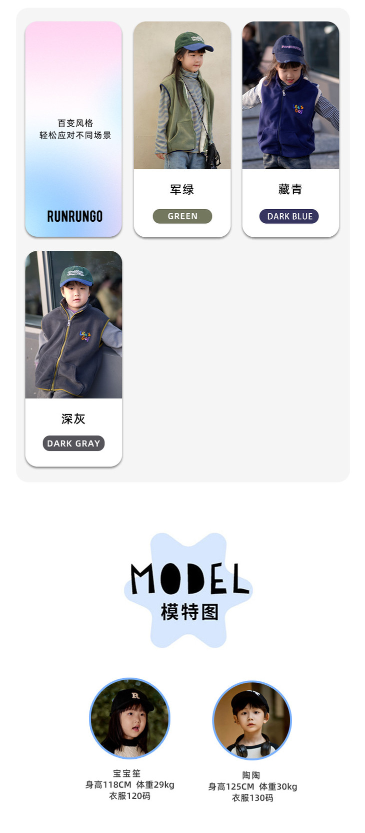 runrungo· 校服神器 · 摇抓绒马甲 “绒”化寒冷🧊 既是外套也可是中间锁温层 温暖的同时享受质感与舒适 整件衣服采用了柔软双摇抓绒,最大的亮点就是柔软, 细腻、亲肤穿感独特垂感,比市面上的抓绒产品,更软更有型; 穿在外套内,就像保温层,阻隔寒冷的空气 小科普👇 ~~~~~~~~~~~~ 适合多少度穿着? 适合-10°C-15°C穿着,春秋是外套, 冬季是内胆,可以根据具体气温单穿或叠穿 在潮湿环境保持干燥的能力强于天然纤维, 非常适合作为保暖层,抵御南方湿冷冬天 ~~~~~~~~~~~~ 洗后会不会掉色掉绒? 固色处理不易掉色,织造紧密不易掉绒,可以放心机洗