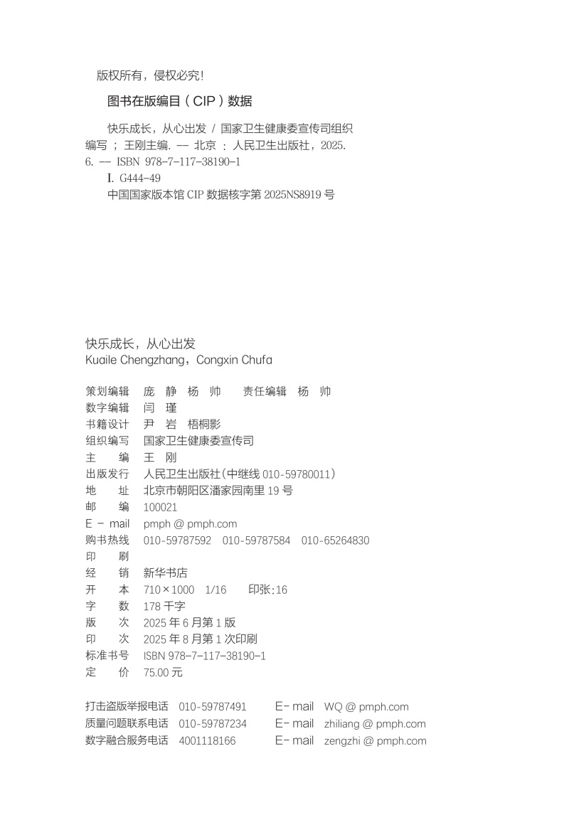 快乐成长 从心出发 王刚 主编 介绍了儿童青少年不同年龄段的心理发展特点 影响因素等 科普读物 9787117381901 人民卫生出版社