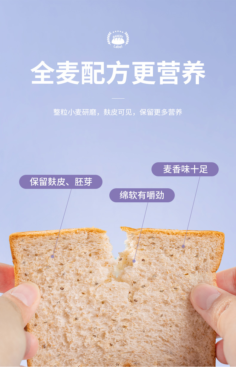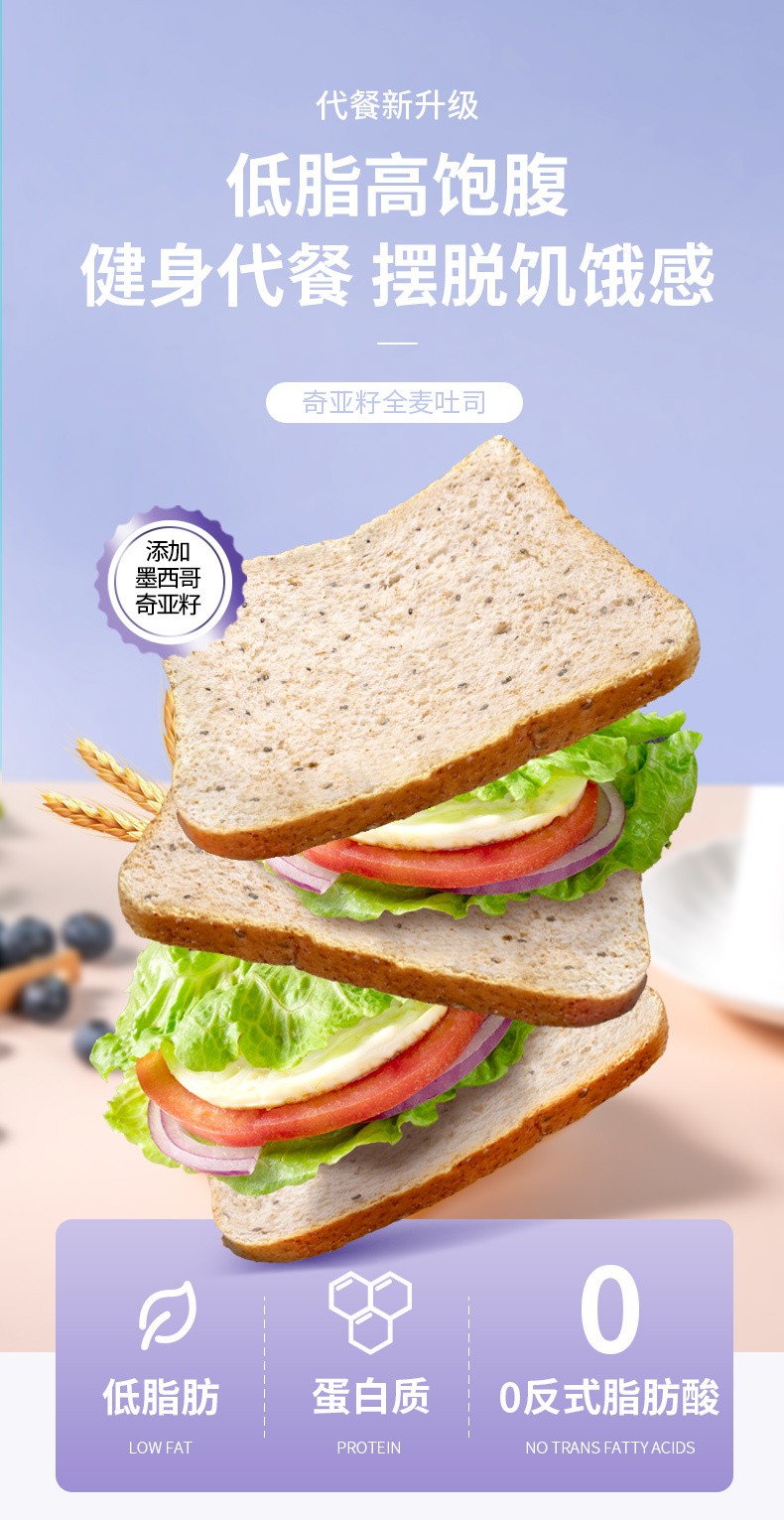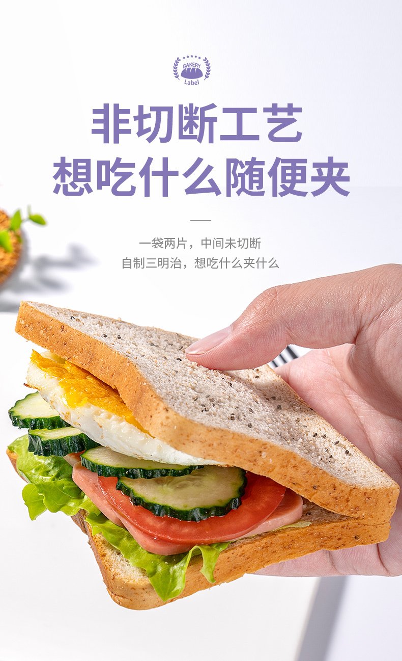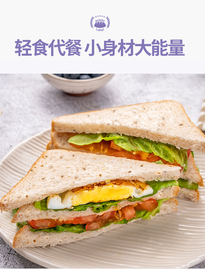 福事多奇亚籽全麦吐司面包500g*2箱
