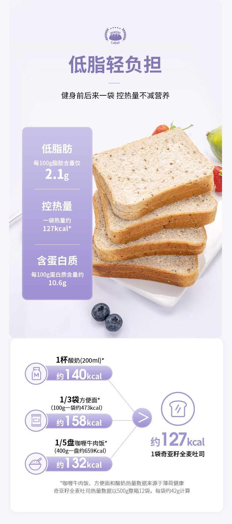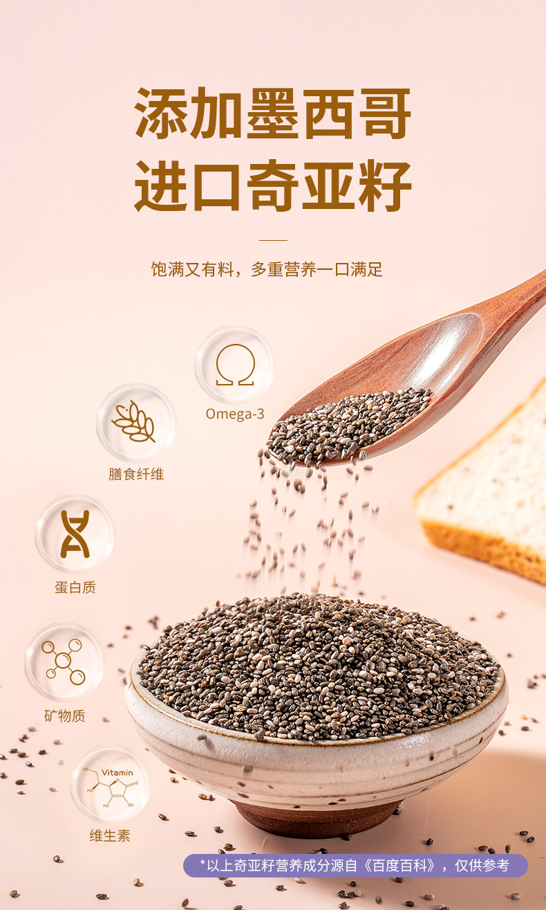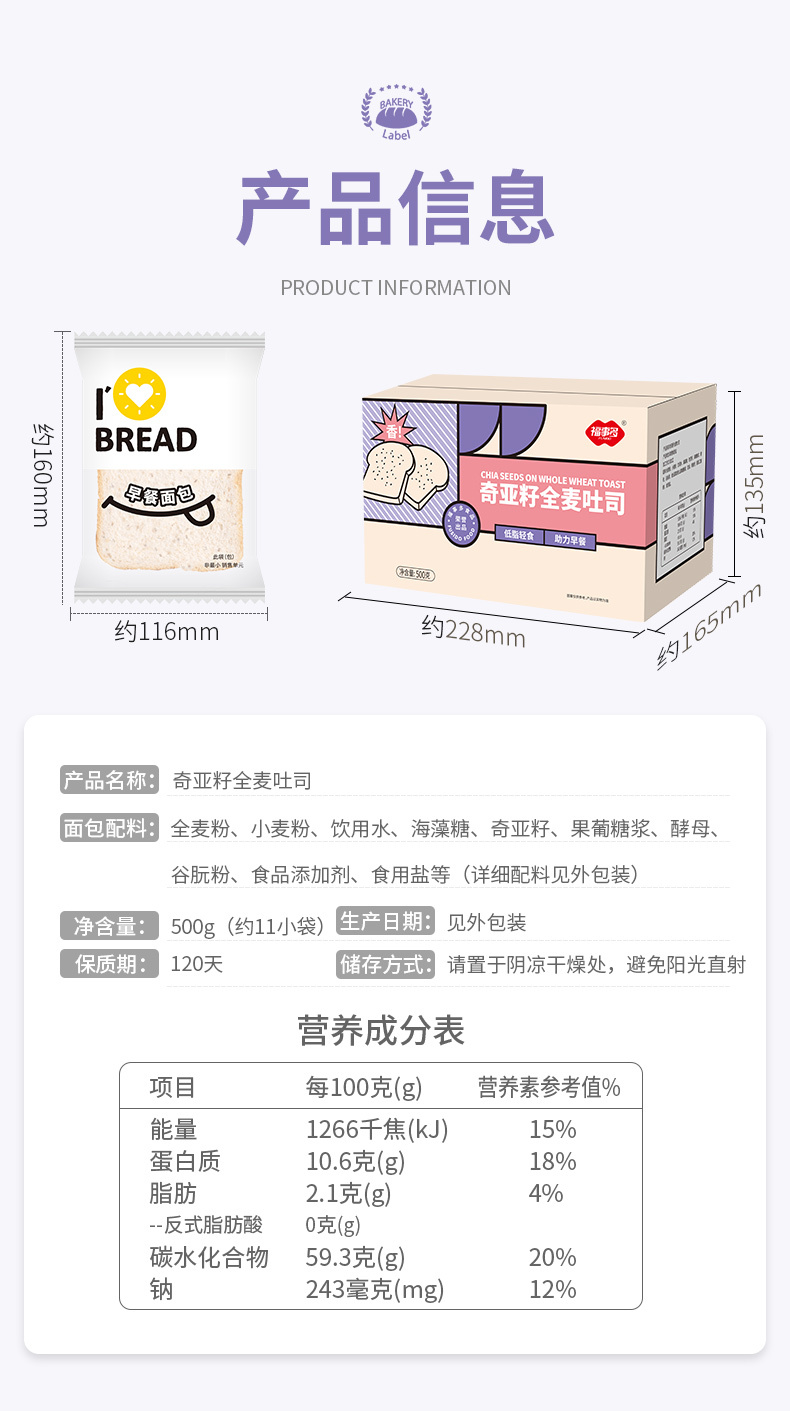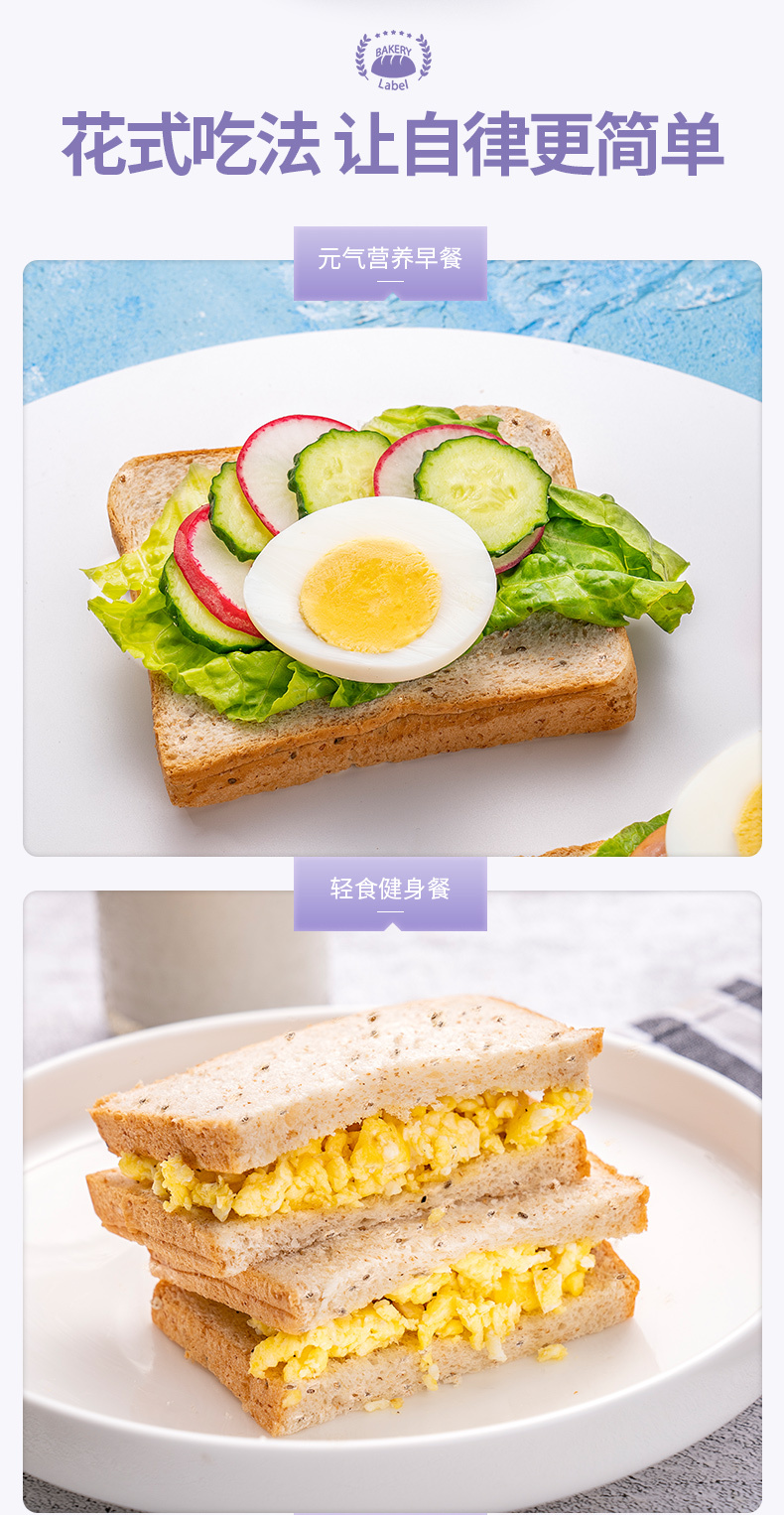 福事多奇亚籽全麦吐司面包500g*2箱
