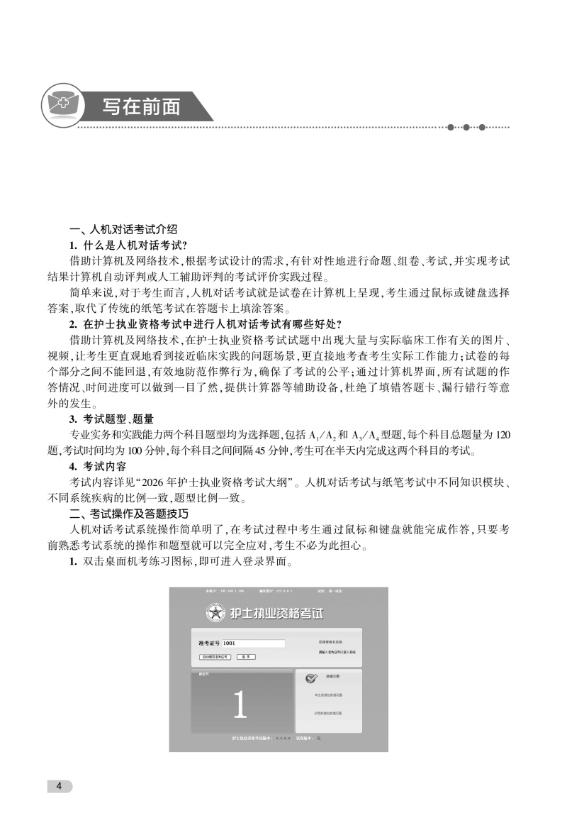 作者在对数千道考试真题分析研究的基础上精心编写了6套试卷,并配有详细解析,让考生通过做题进一步巩固重点难点。同时作者紧密围绕新考试大纲,对2026年考情、考点进行了预测,让考生能了解出题的规律,提高复习效率。本书附赠“全国护士执业资格考试考点清单”,通过“关键词速记”“诊断公式”“对比记忆”“结构图”等形式,将同类考点归纳、对比,帮助考生提高复习效率。本书分为3大板块:“写在前面”对人机对话考试加以介绍,对答题方式和技巧进行重点指导。6套“通关卷”,涵盖人机对话实际考题,并融入对2026年护士执业资格考试的预测试题,使考生熟悉人机对话考试试题形式和内容。“考点清单”将同类考点进行归纳、对比,帮助考生巧记速记、冲刺提分。