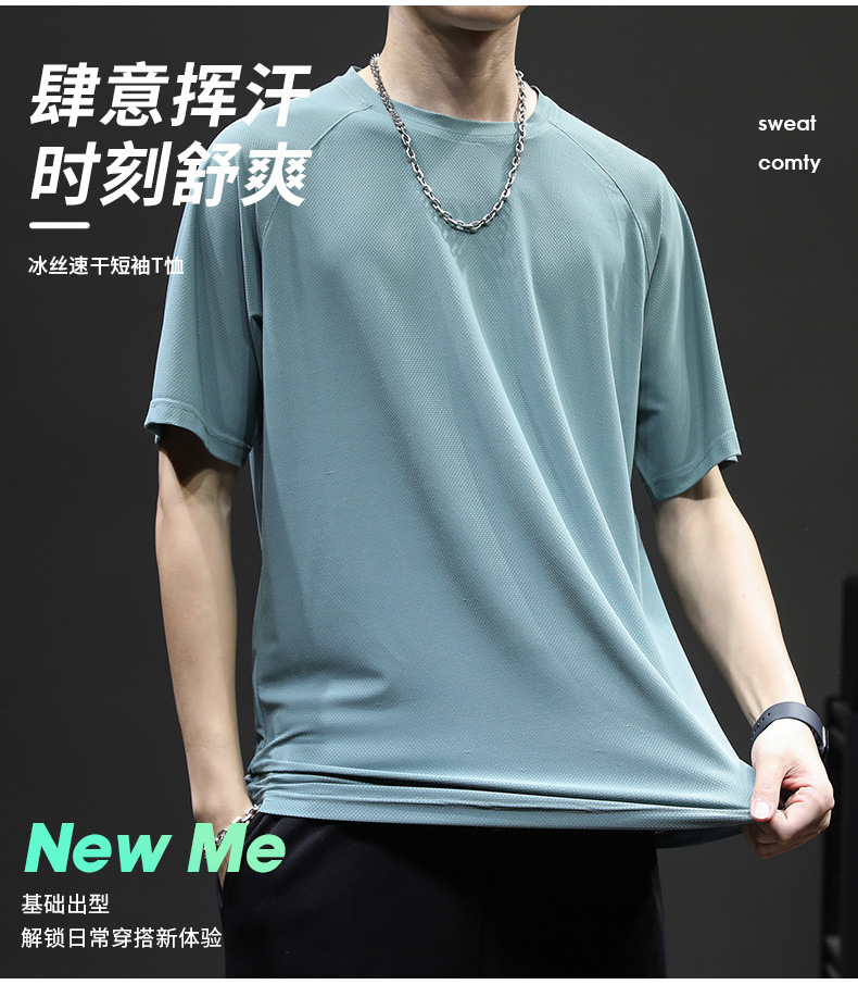 【拍2件119元】男士冰丝速干排汗T恤男 超大弹力超薄款运动透气凉快短袖上衣