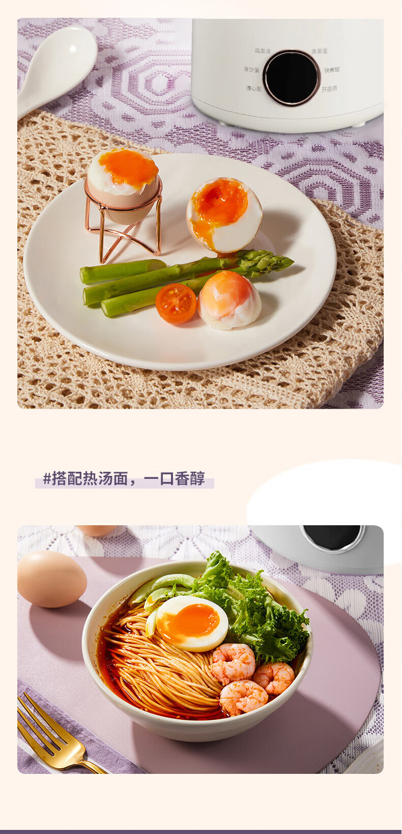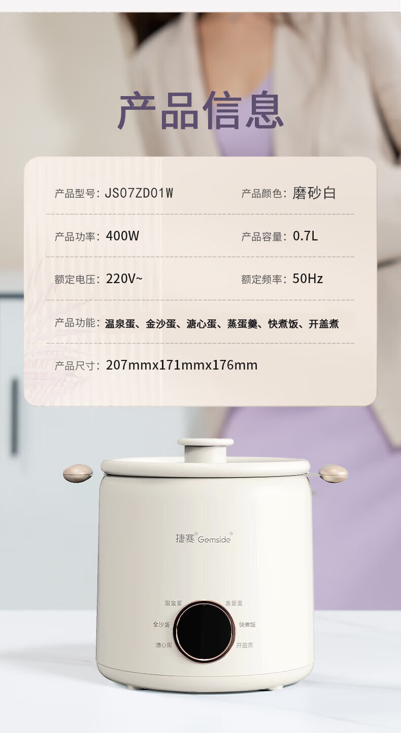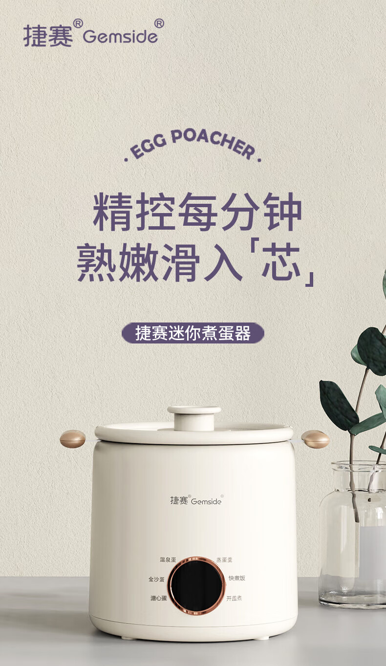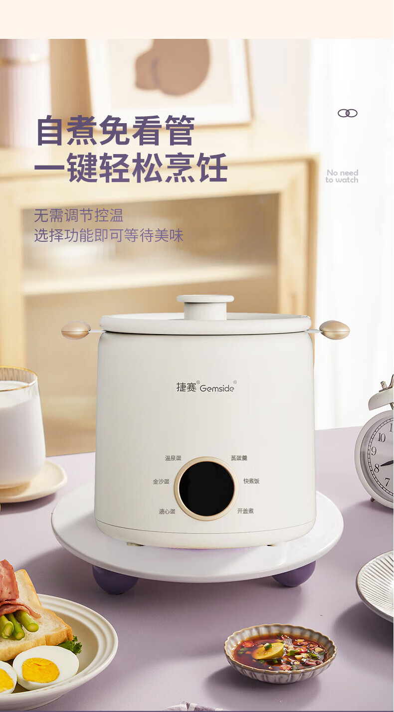 捷赛多功能煮蛋器 小型蒸蛋器 家用智能控温煮蛋可煮温泉蛋溏心蛋防干烧早餐蒸煮一体机JS07ZD01W