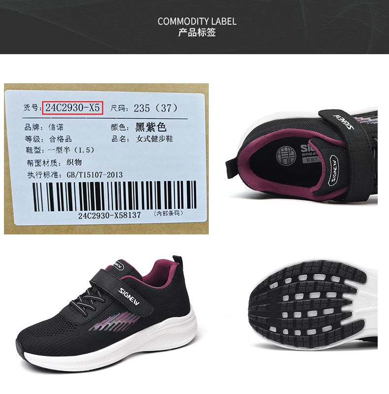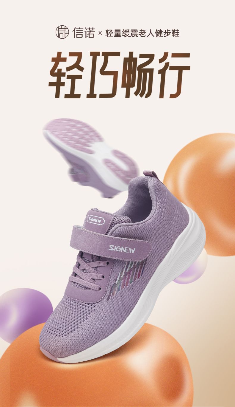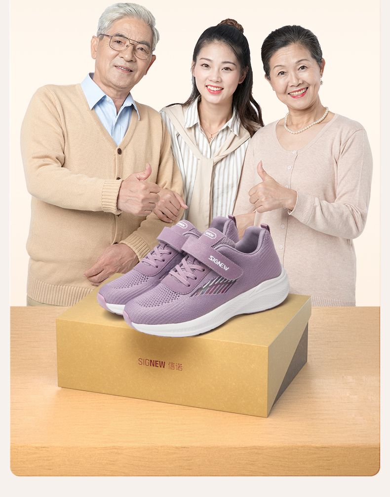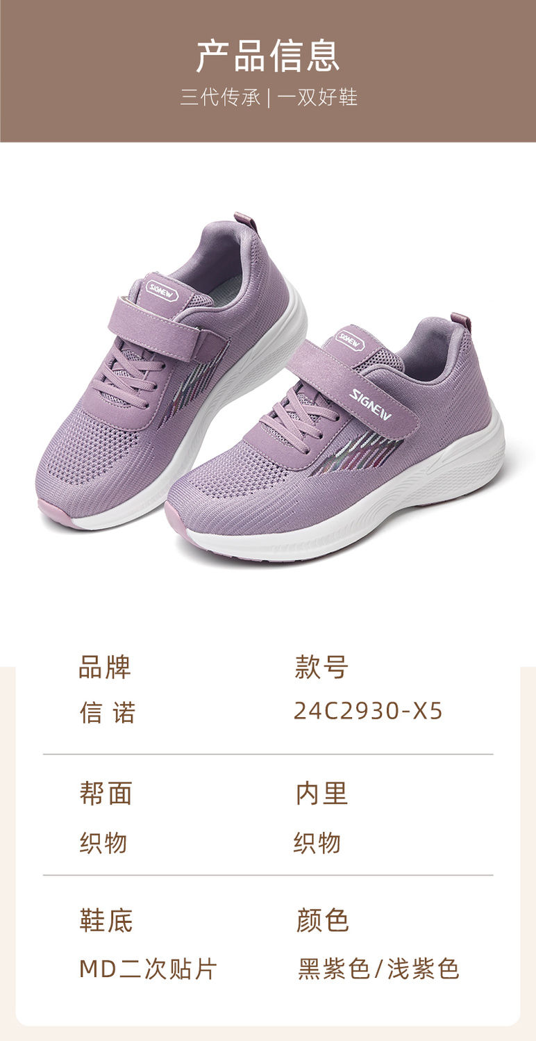 信诺 透气舒适女鞋 2024新款夏季中老年人轻便软底运动健步妈妈鞋24C2930-X5