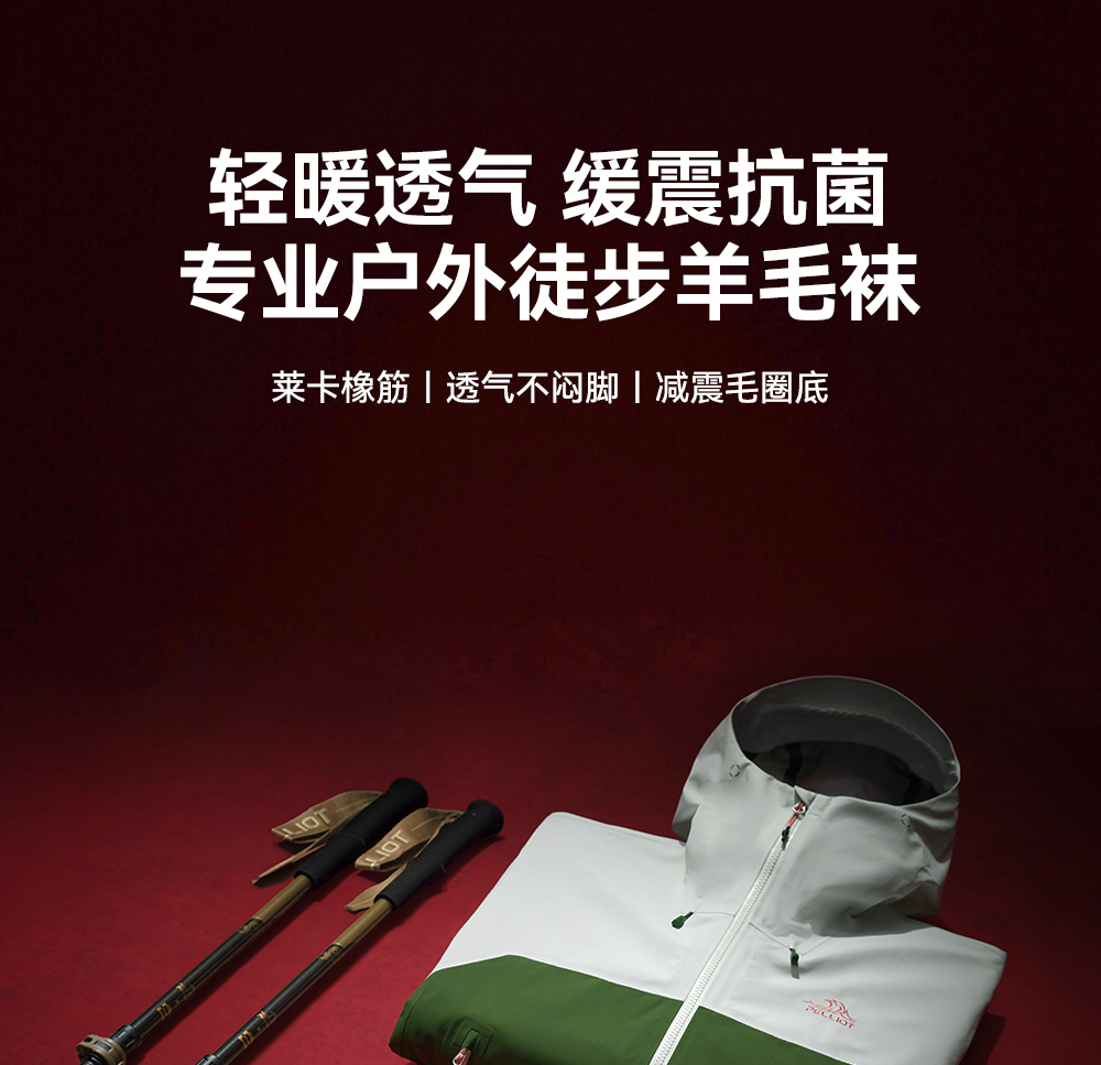 伯希和户外中筒徒步袜子男美利奴羊毛加厚保暖运动登山袜女滑雪袜