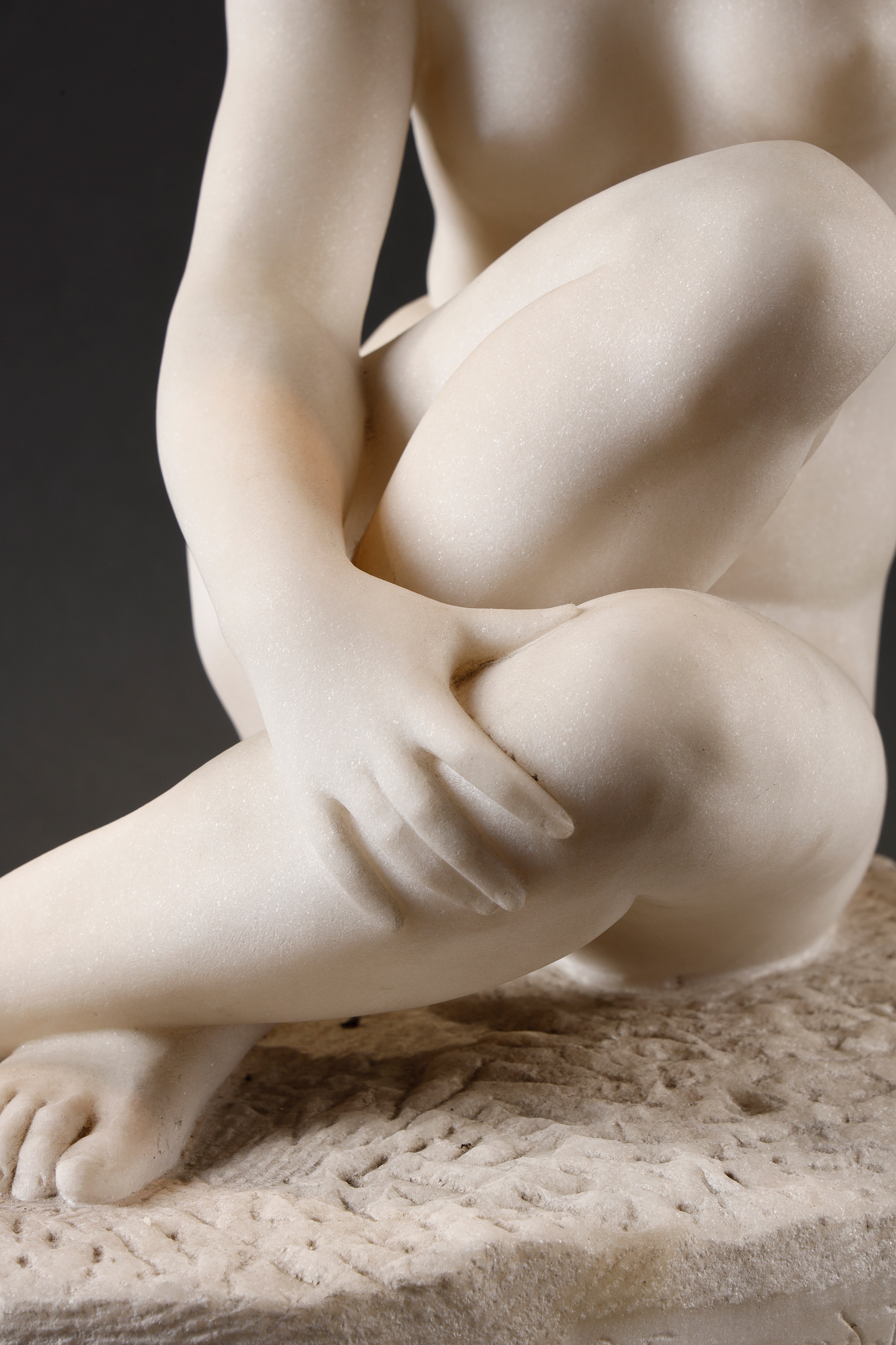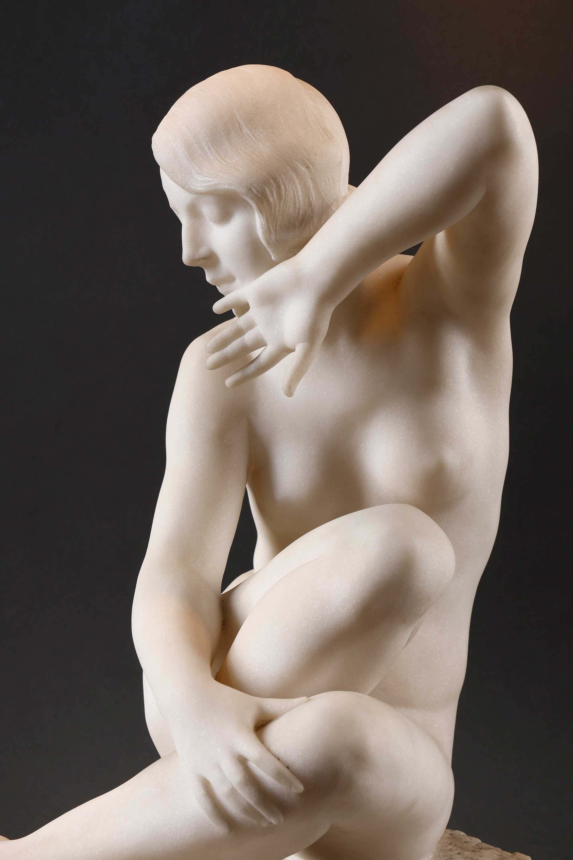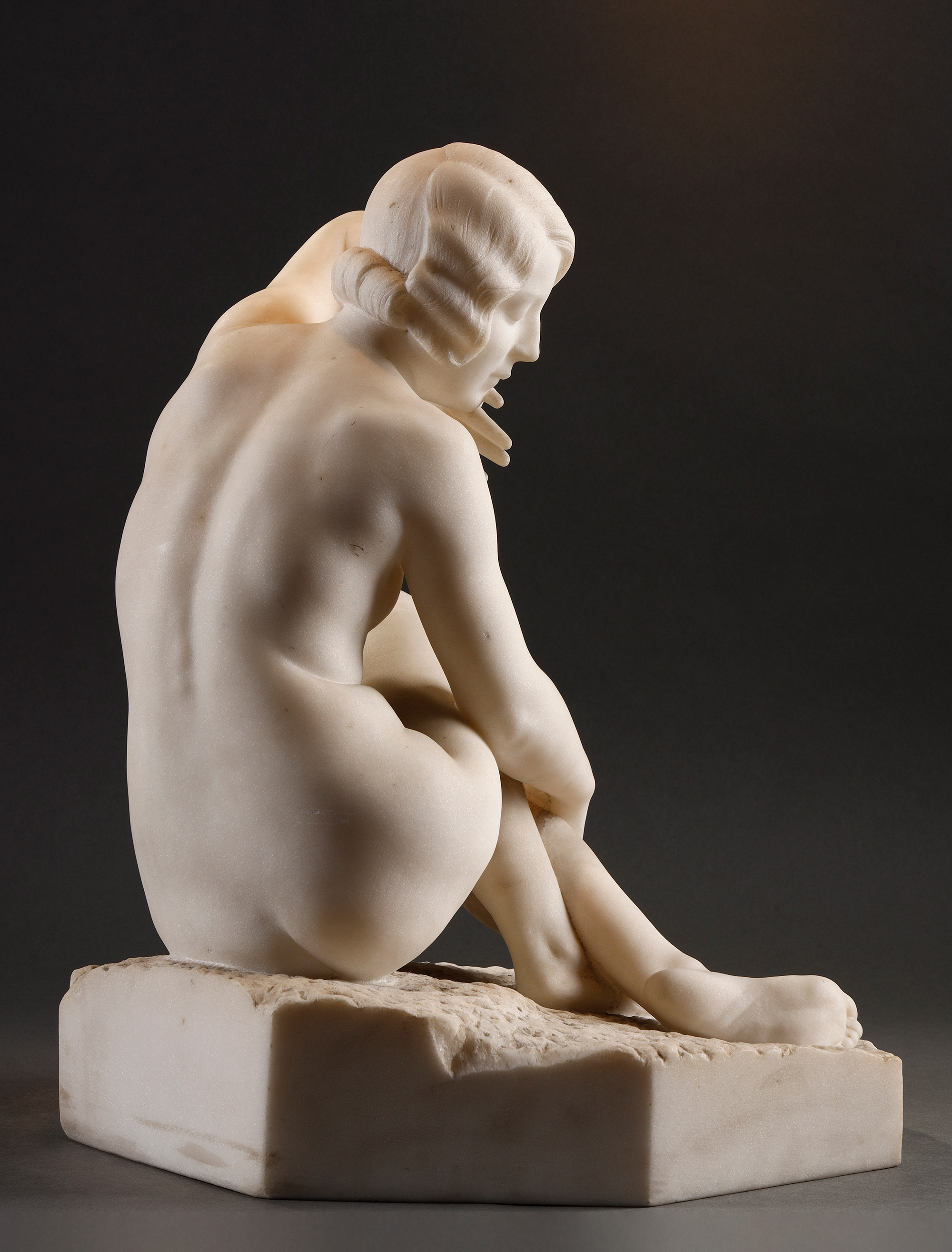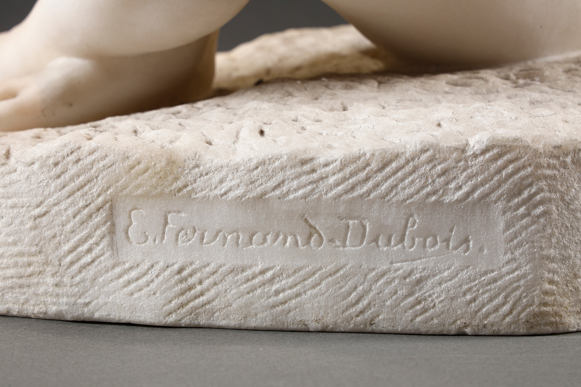 19世纪末至20世纪初比利时雕塑家Fernand Dubois签名出品卡拉拉大理石精雕人物雕塑《坐姿少女》