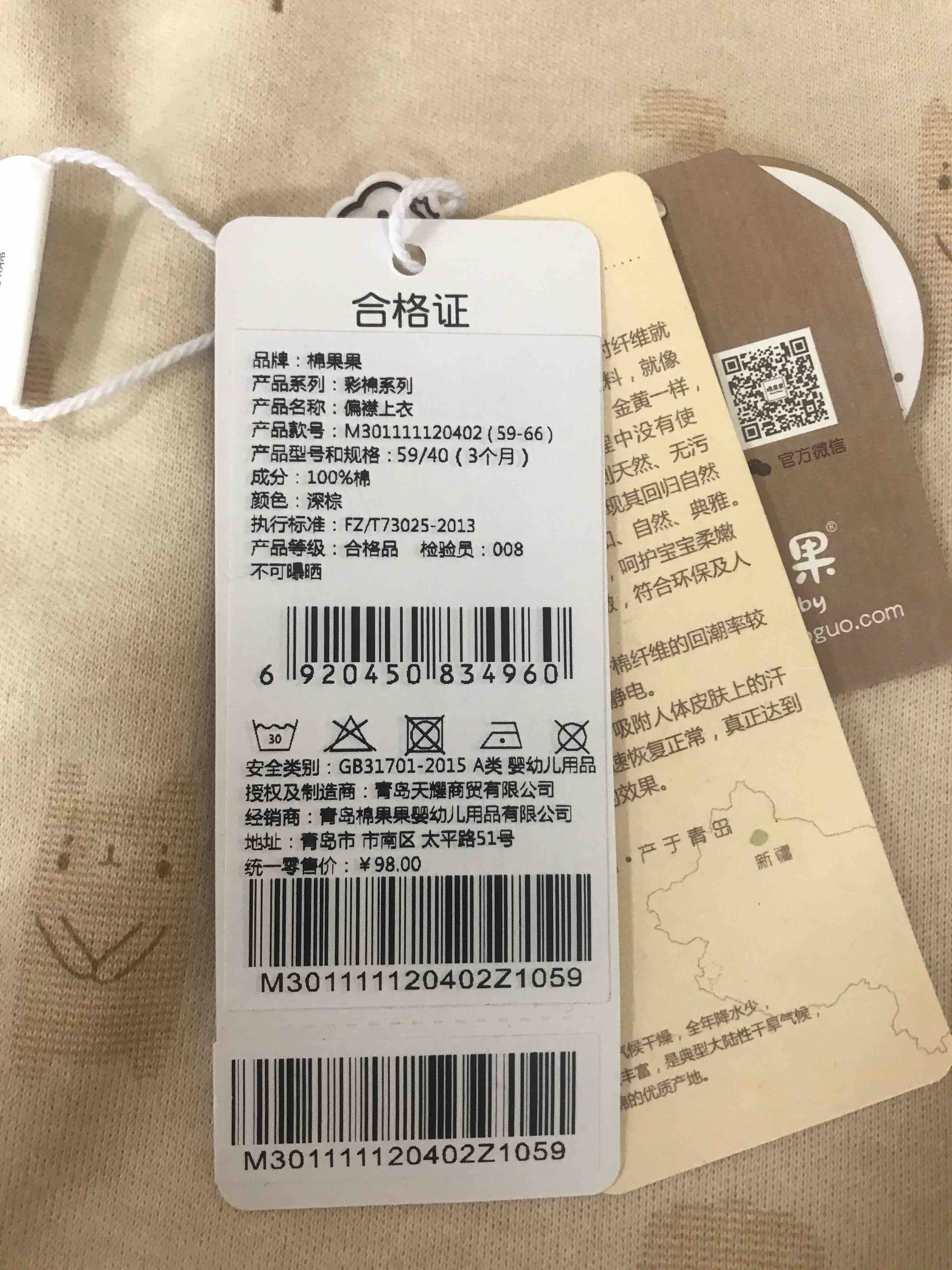 棉果果秋季新疆彩棉纯棉偏襟上衣M301111120402