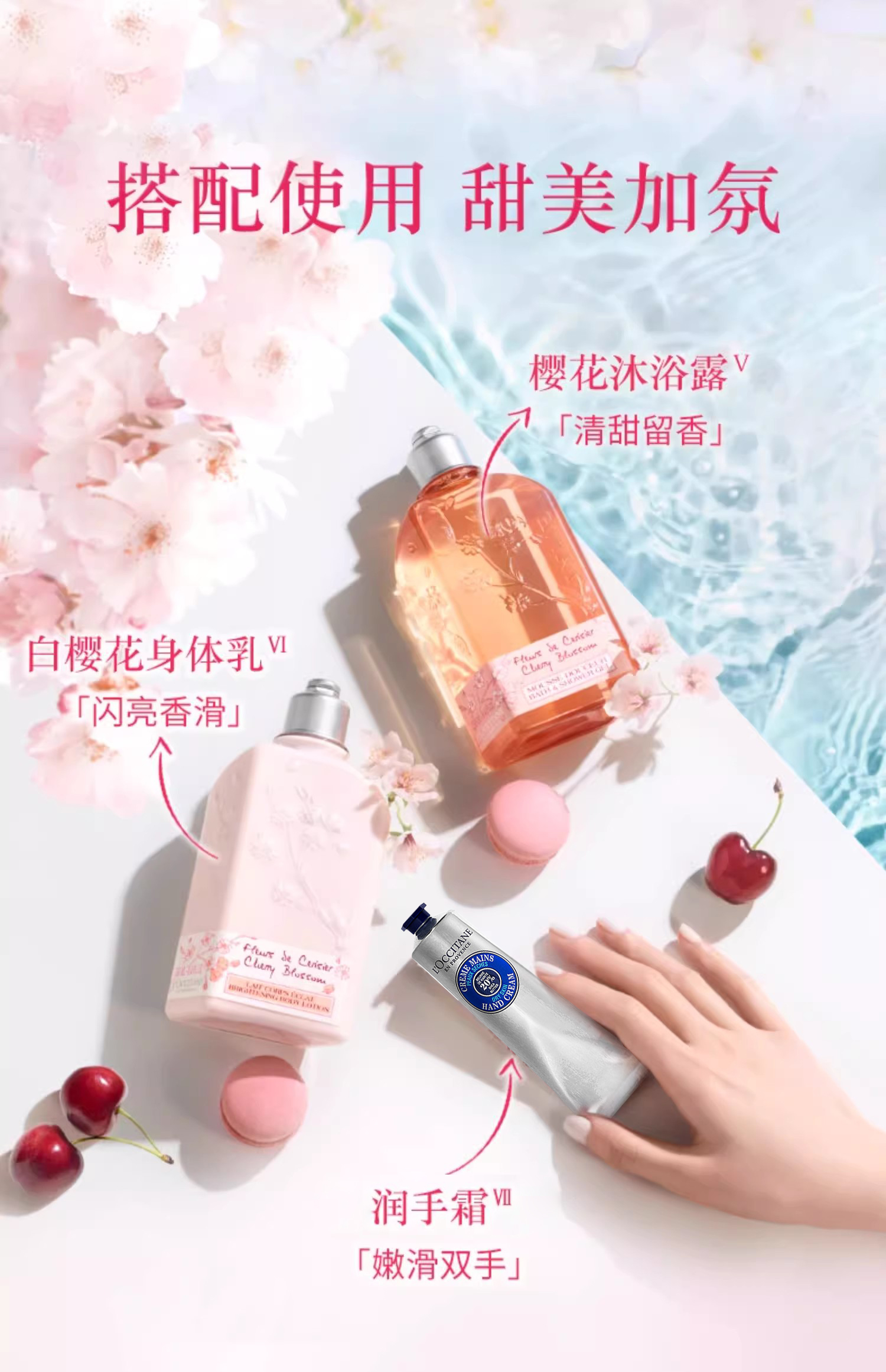 【组合装】欧舒丹樱花沐浴露250ml+樱花身体乳250ml+乳木果护手霜150ml