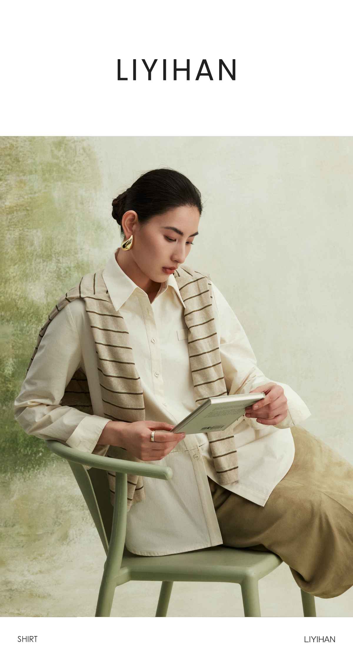 LIYIHAN织梦丨25春全棉扭结设计感衬衫小众设计女上衣宽松高级感