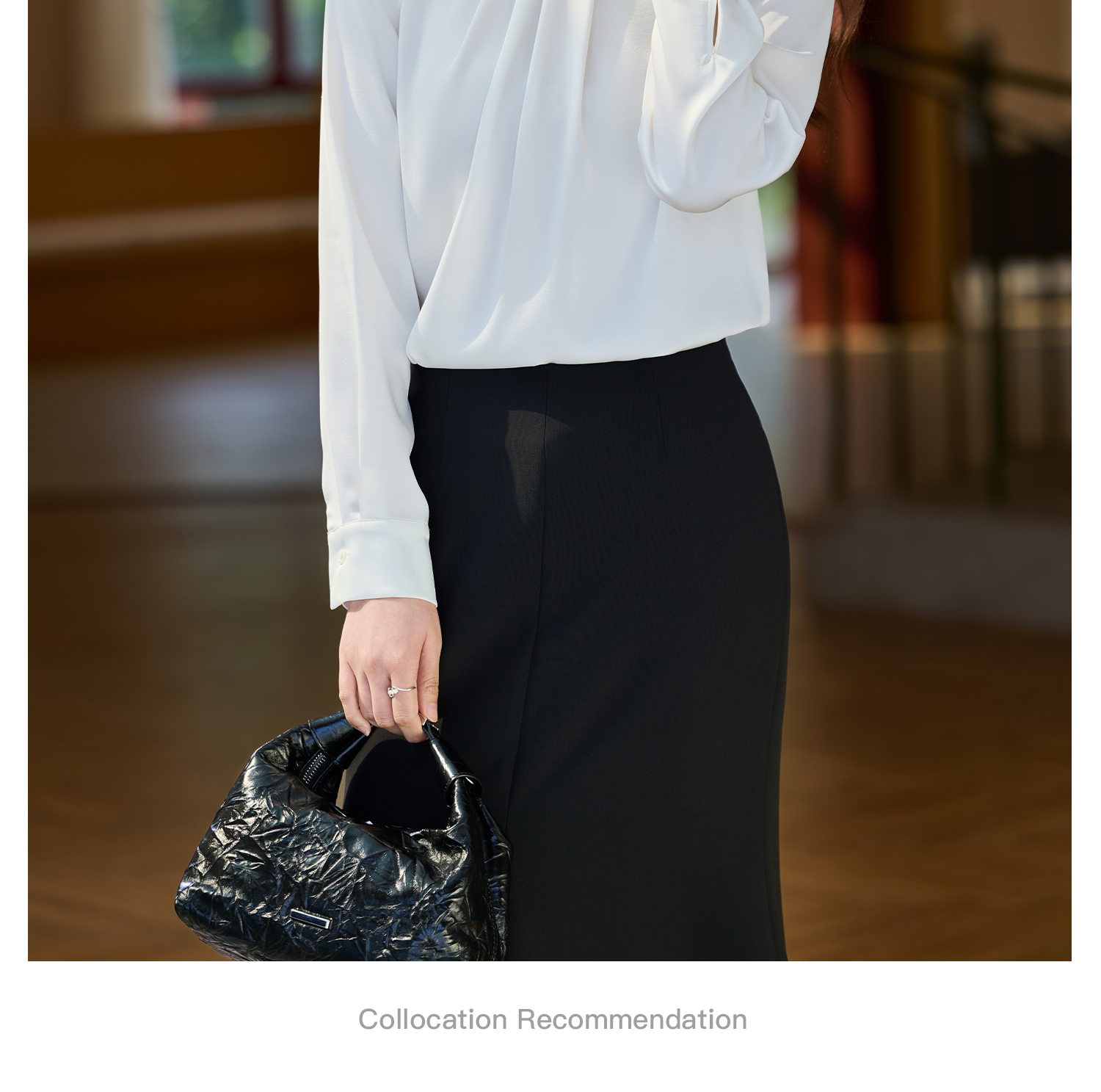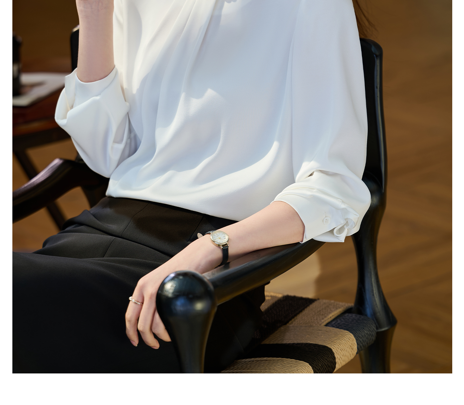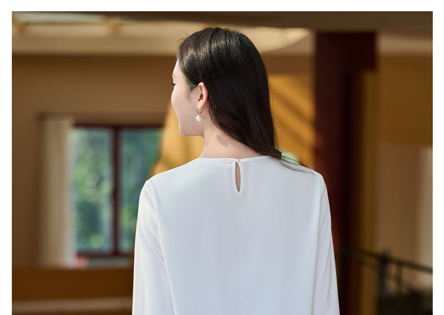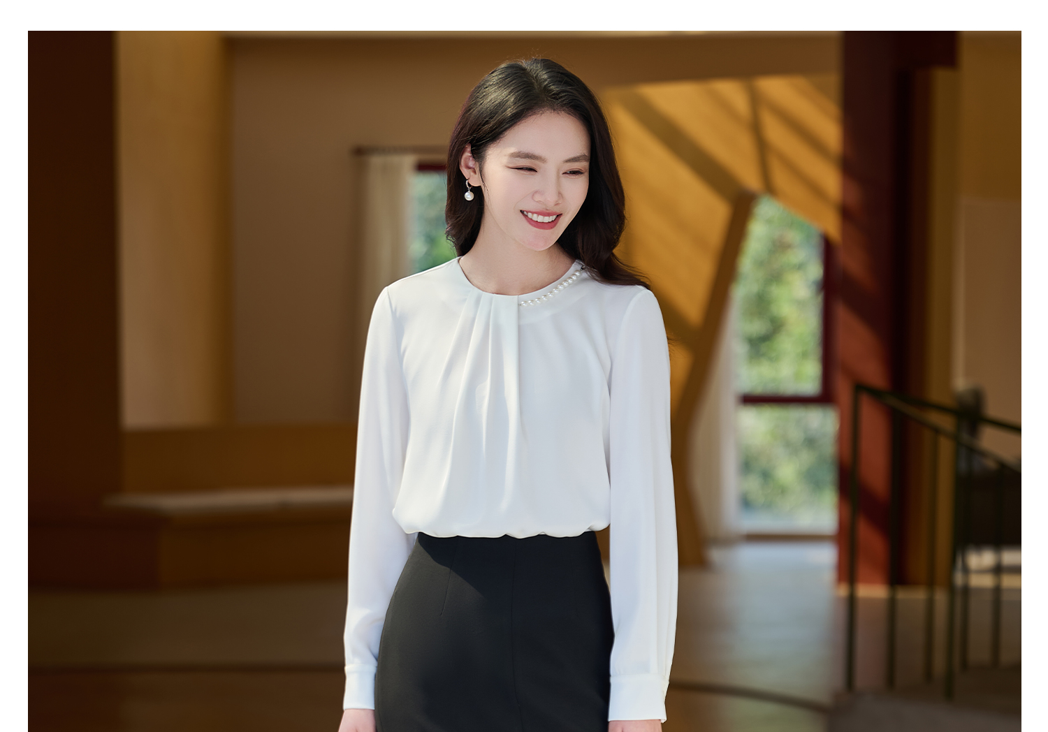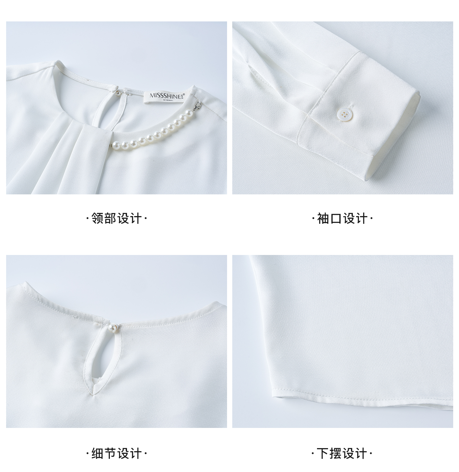 法式圆领珍珠衬衫 复古气质 米思阳2026春季新款简约垂感气质通勤米白色衬衫5815