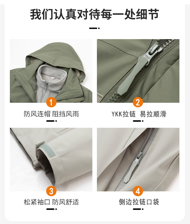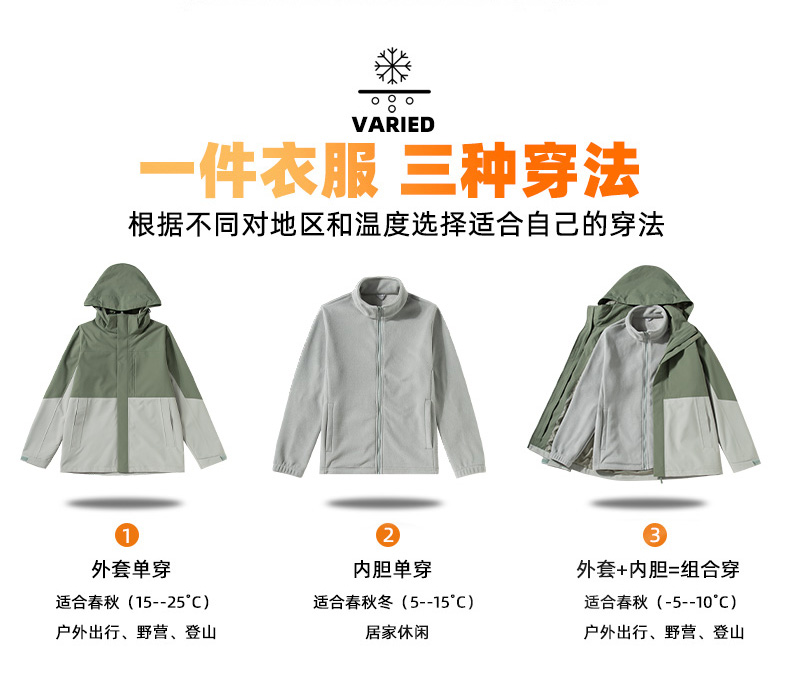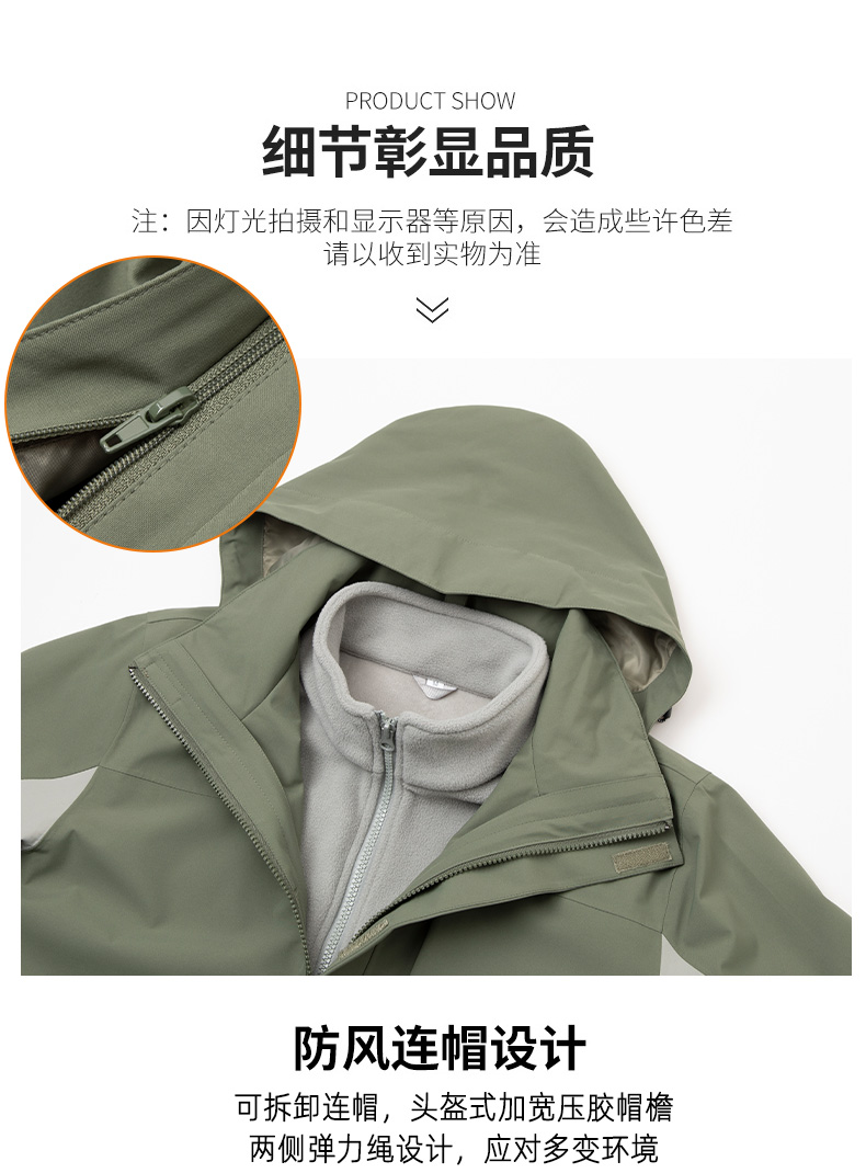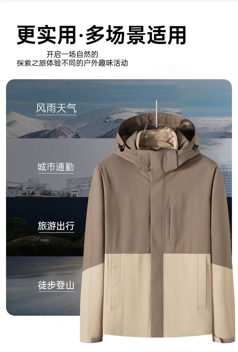 【四级防水&冲锋系列】圣得西连帽大口袋一衣多穿三合一夹克外套