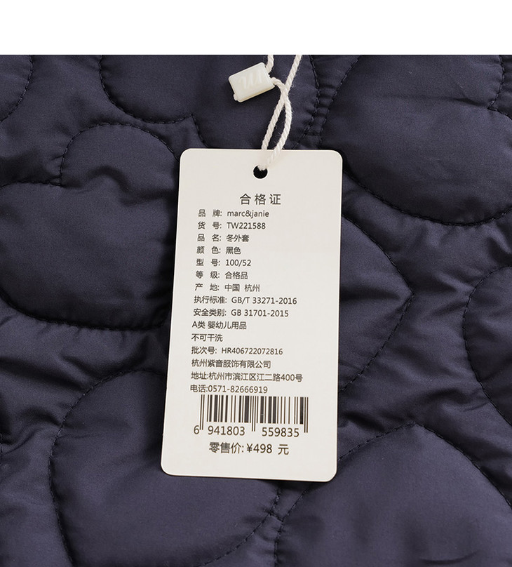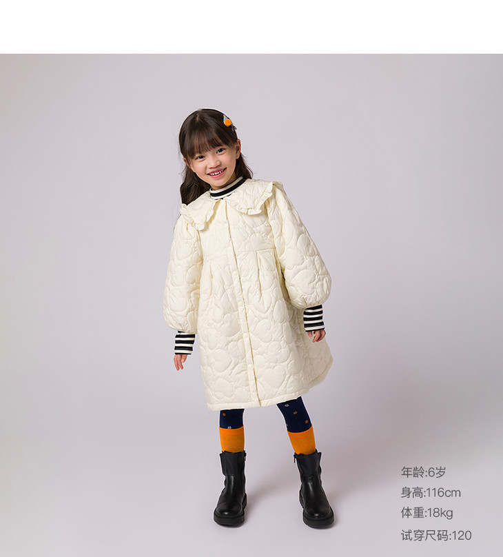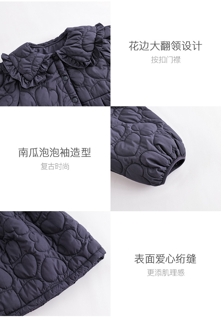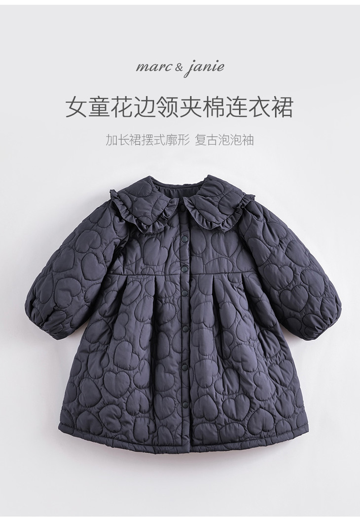 马克珍妮秋冬新款 女童花边大翻领夹棉外套 儿童棉服221588