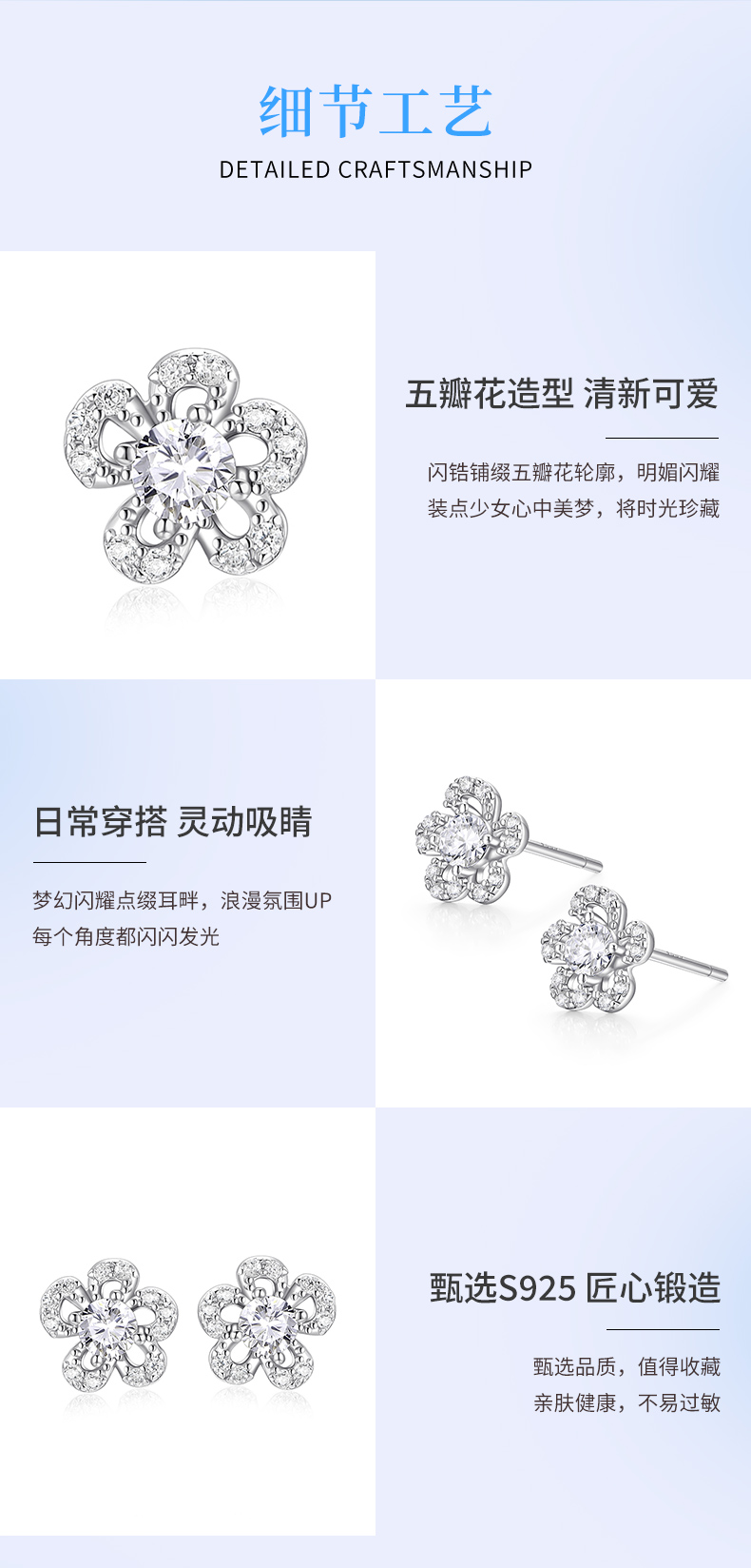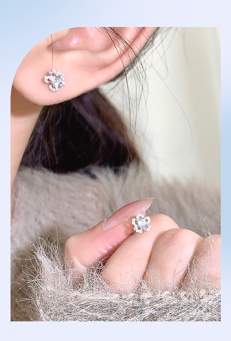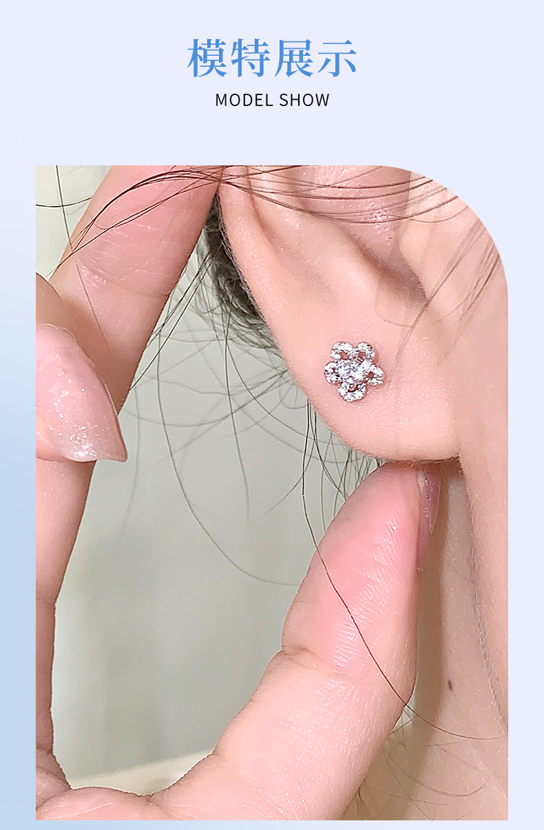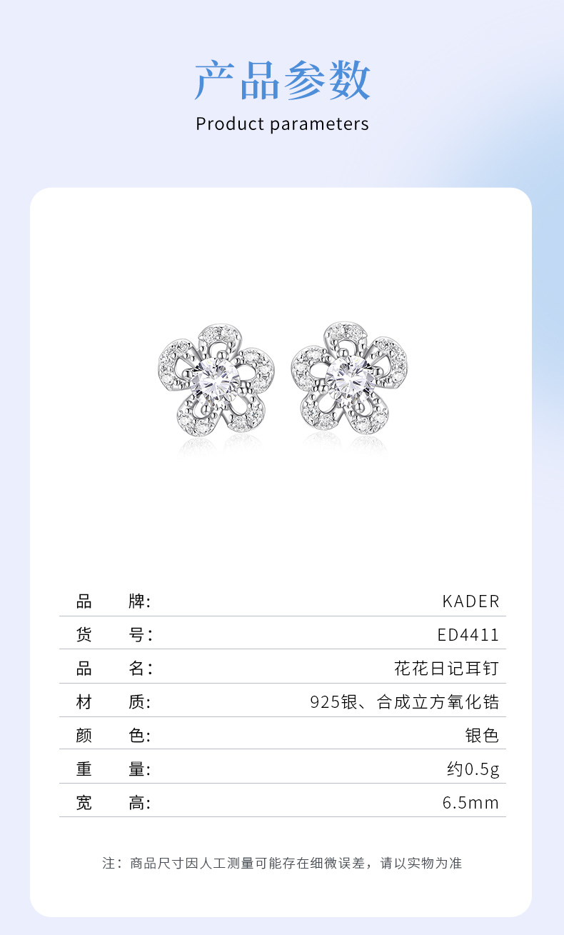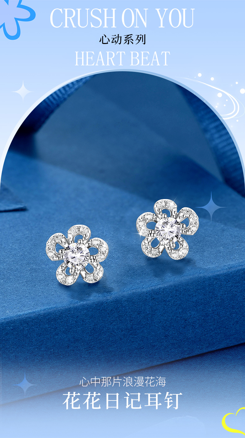 卡蒂罗/KADER 花花日记耳钉 可爱小花清新甜美满镶锆石闪耀五瓣花设计养耳洞耳饰 约会穿搭简约配饰 925银