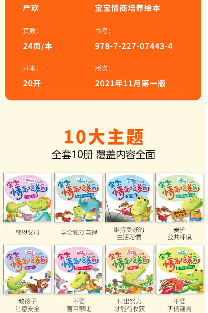 A134【3-8岁】《宝宝情商培养绘本》(全10册)彩绘注音版【15元付邮领书】2022.12