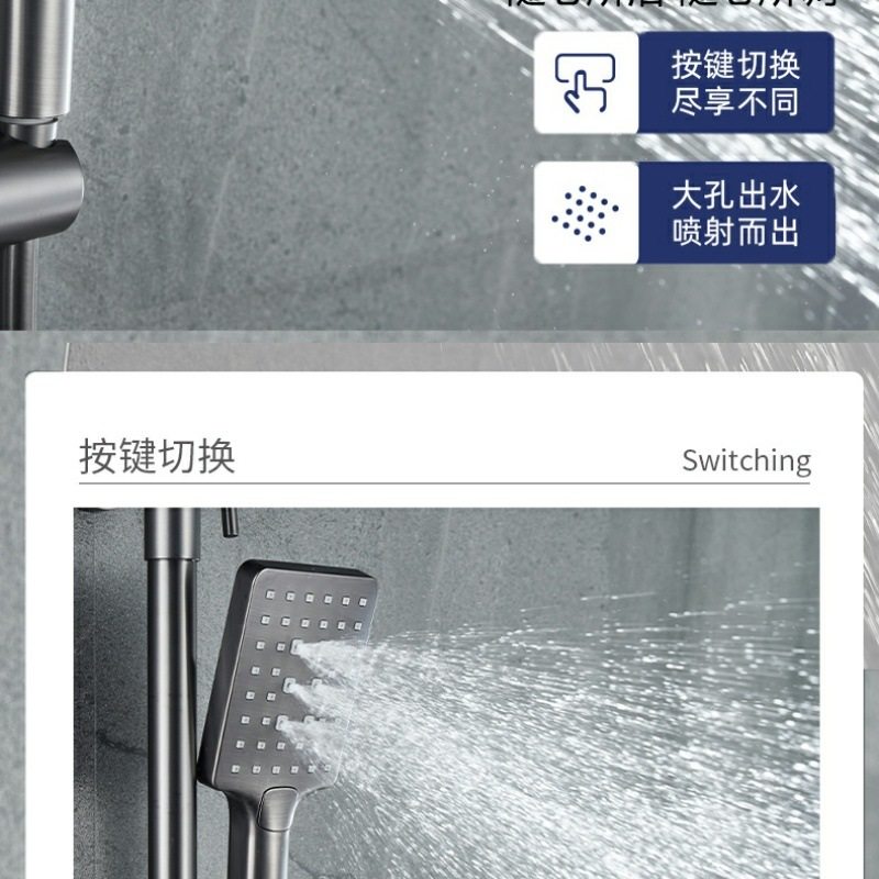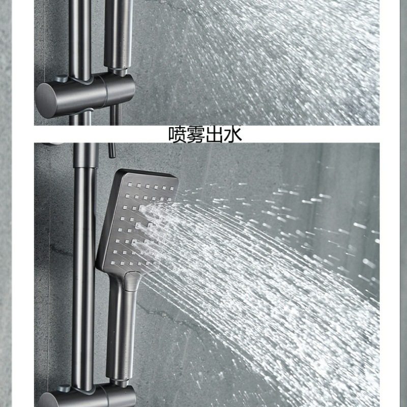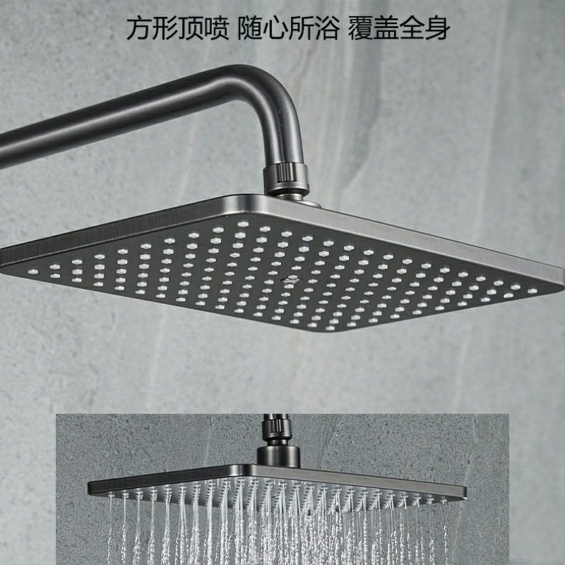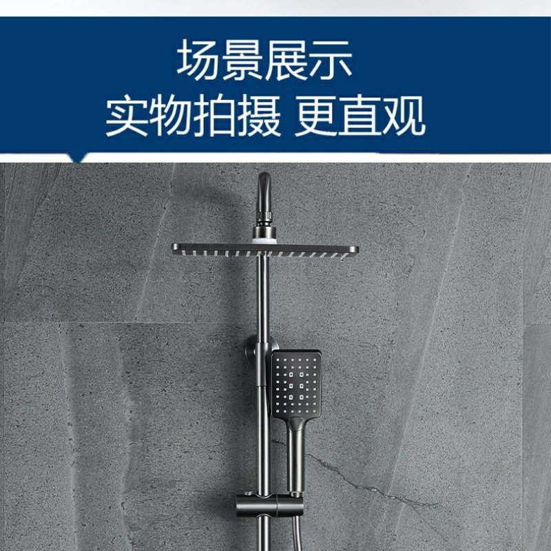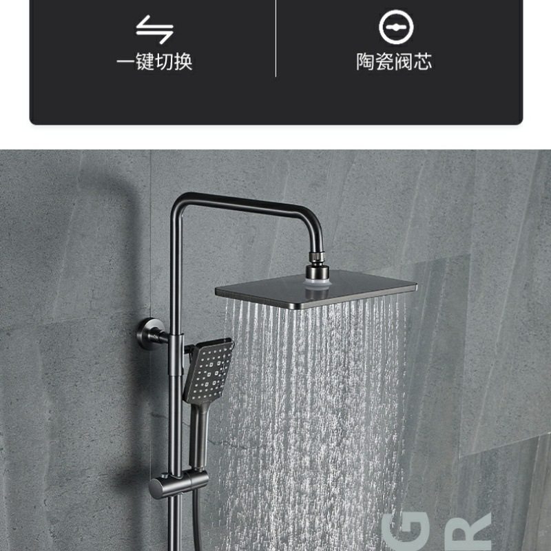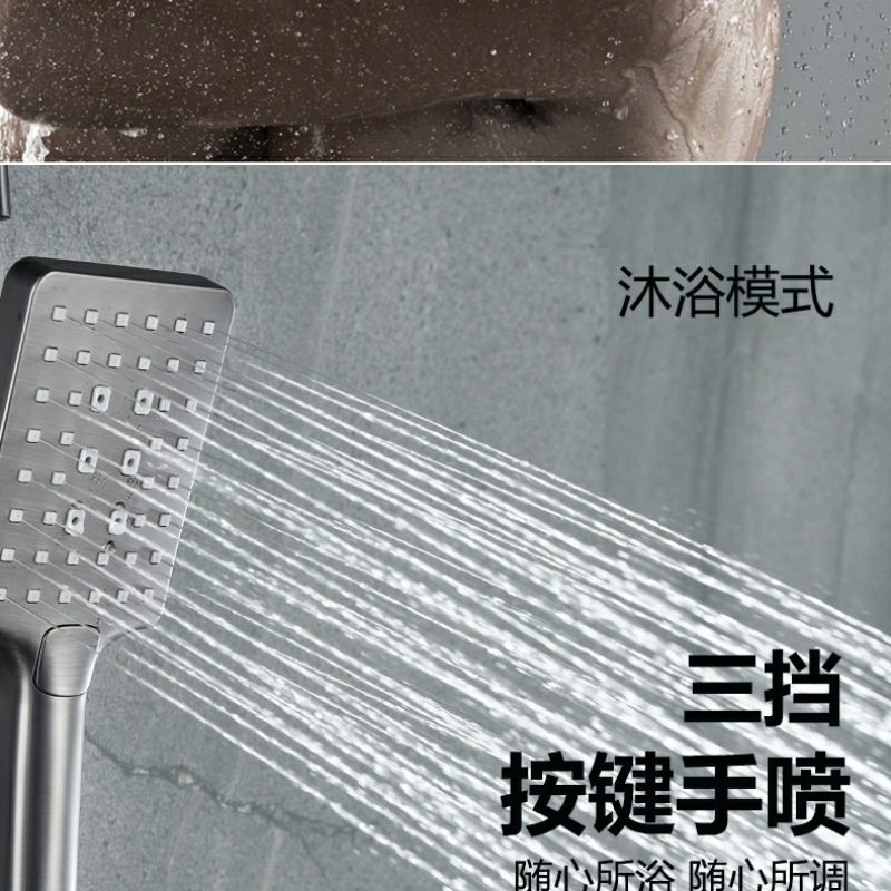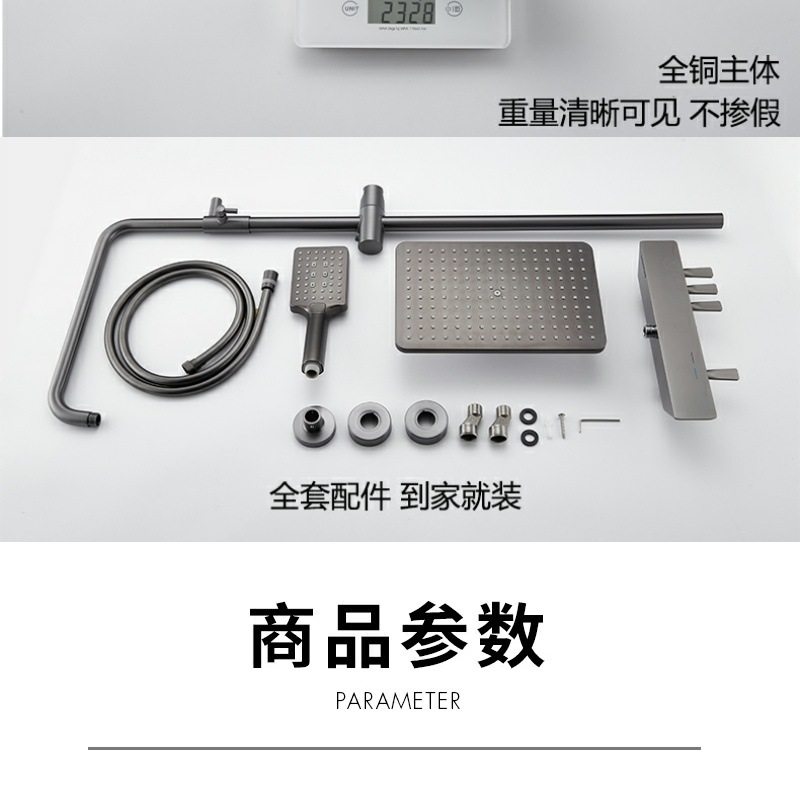 黑色全铜淋浴套装家用水阀水龙头花洒枪灰喷头花洒按键混浴室洗澡