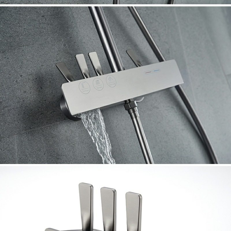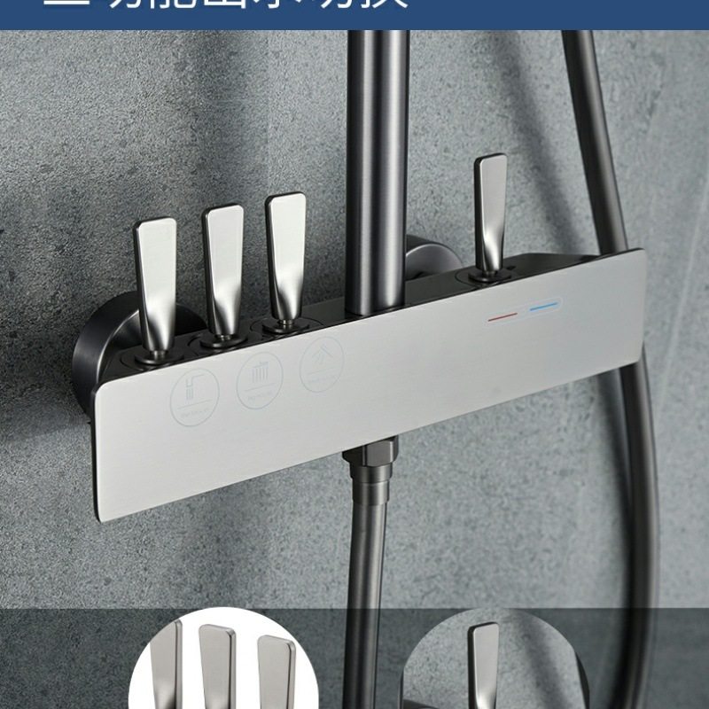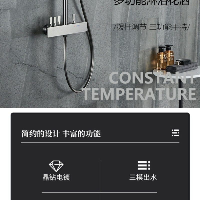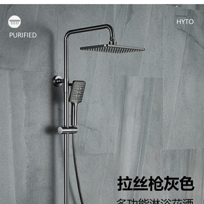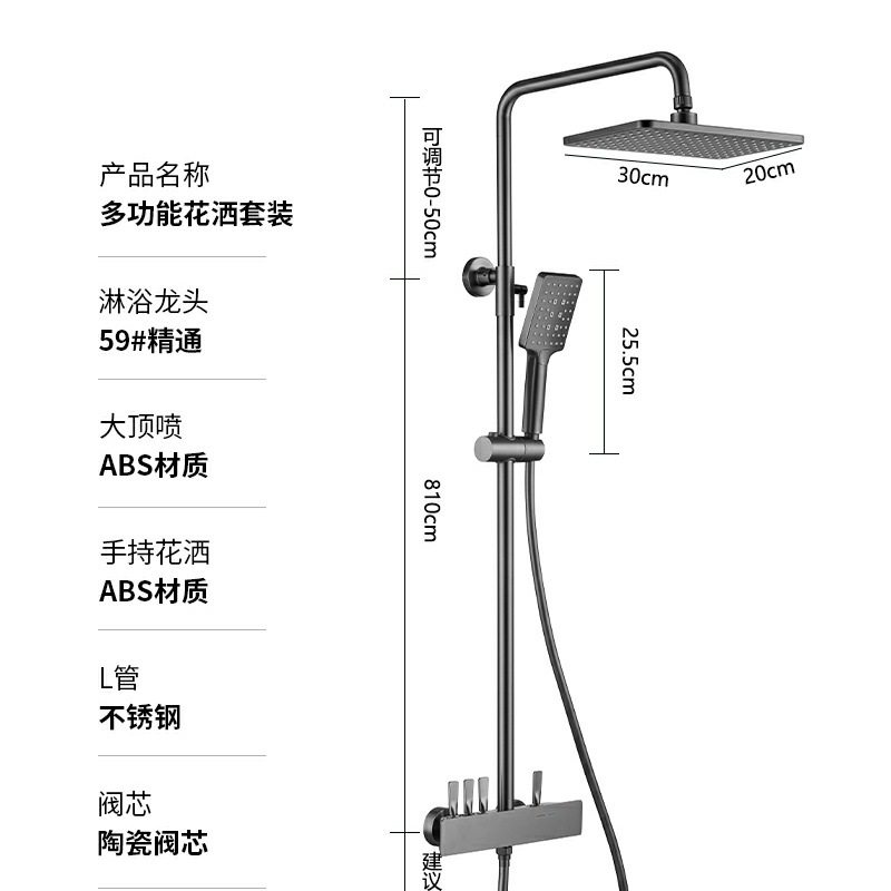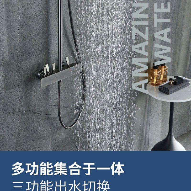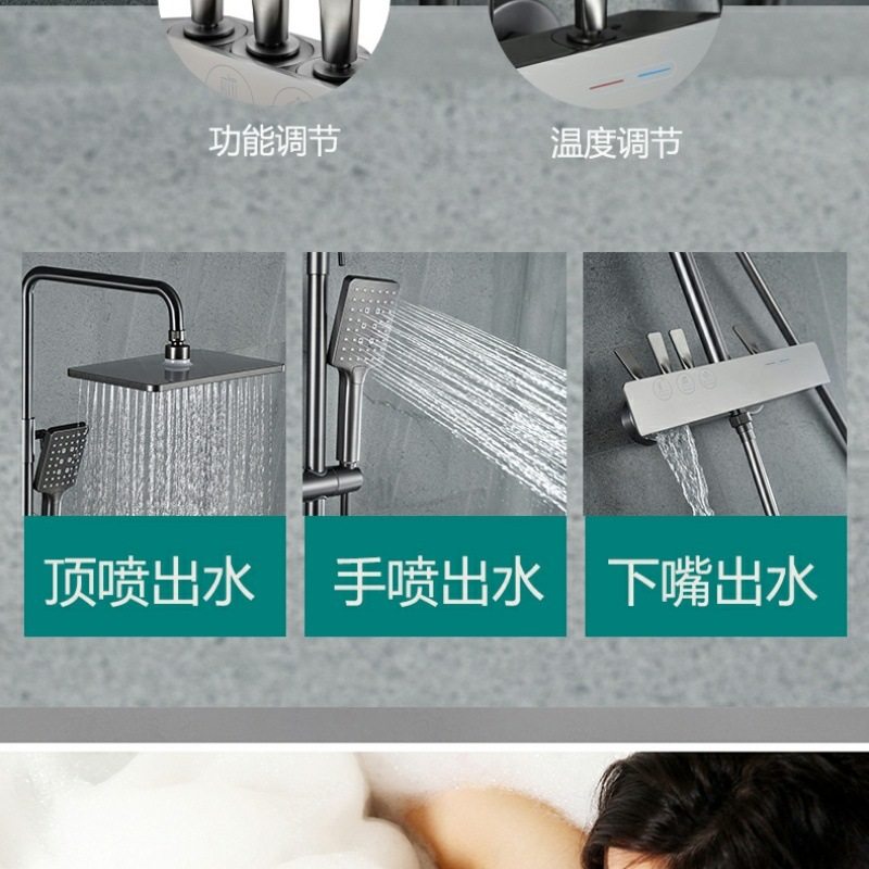 黑色全铜淋浴套装家用水阀水龙头花洒枪灰喷头花洒按键混浴室洗澡