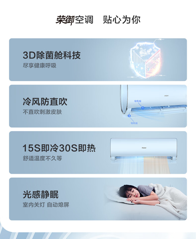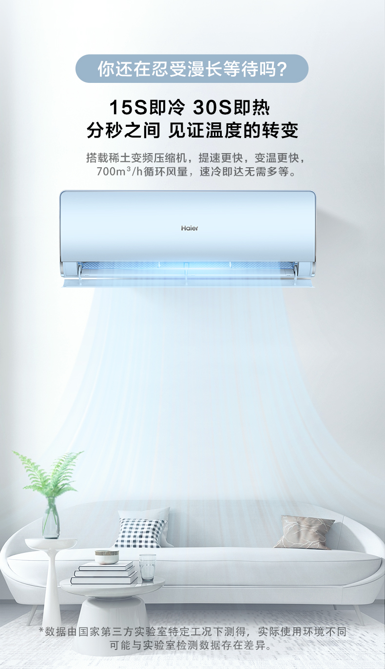 海尔(Haier)新一级 1.5匹 荣御 变频 冷暖壁挂式空调挂机 KFR-35GW/81@U1-Ub