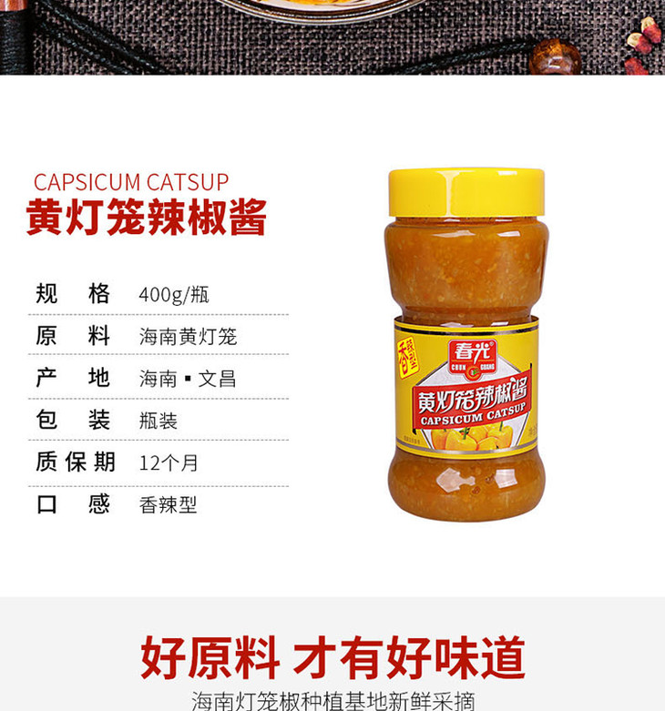 【春光食品_黄灯笼辣椒酱400g】酸汤肥牛厨房调味佐料佳品 香辣型