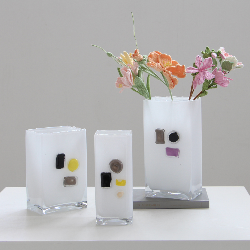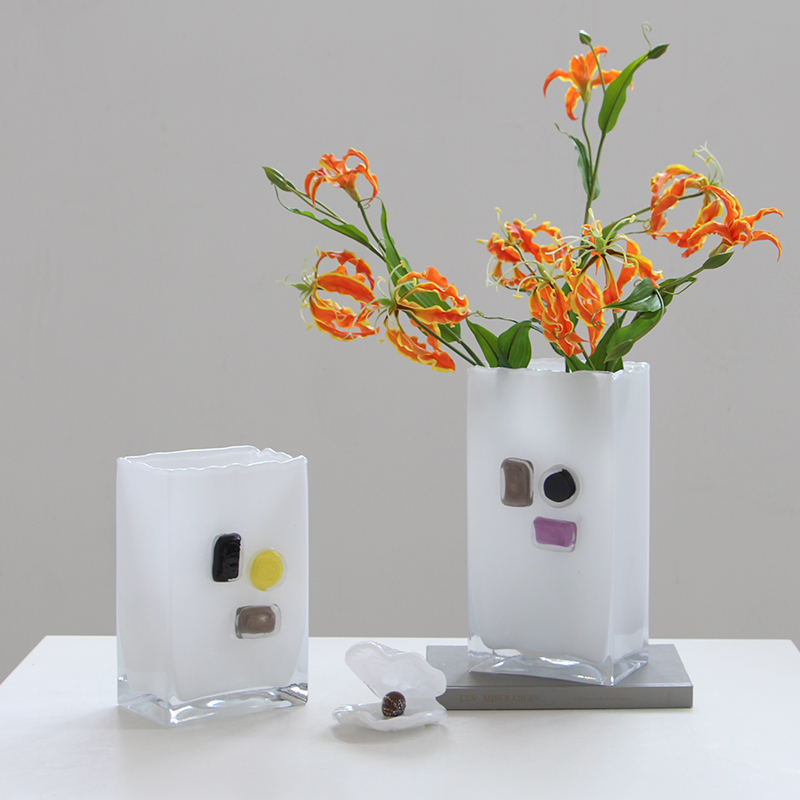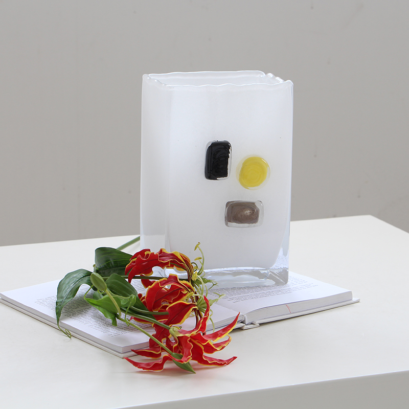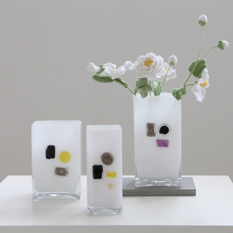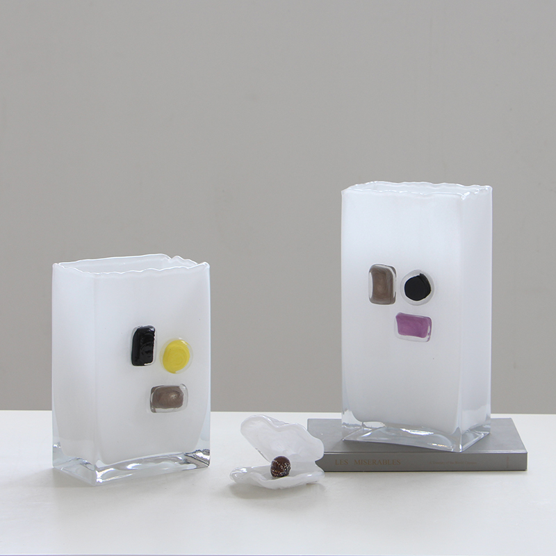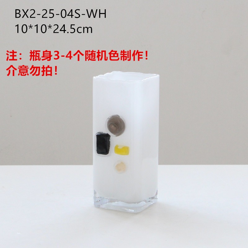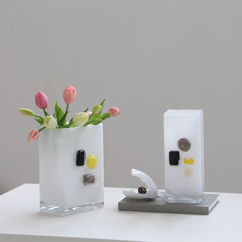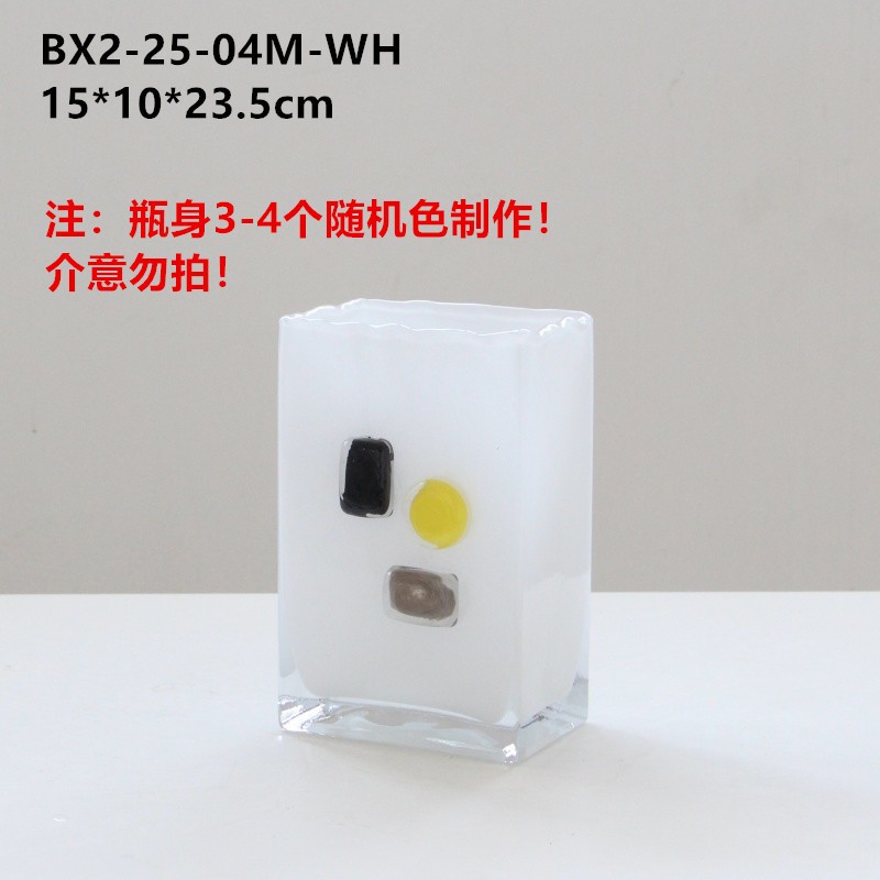 创意轻奢厚重手工白色方形玻璃花瓶居家高级感玄关客厅软装插花瓶