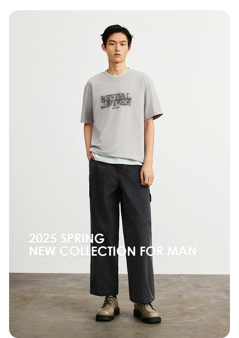 GXG男装 休闲简约T恤字母印花圆领短袖针织 春季热卖G25X441009