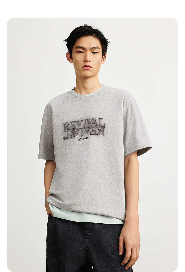 GXG男装 265g重磅字母绣花简约时尚圆领短袖T恤男士 夏季热卖