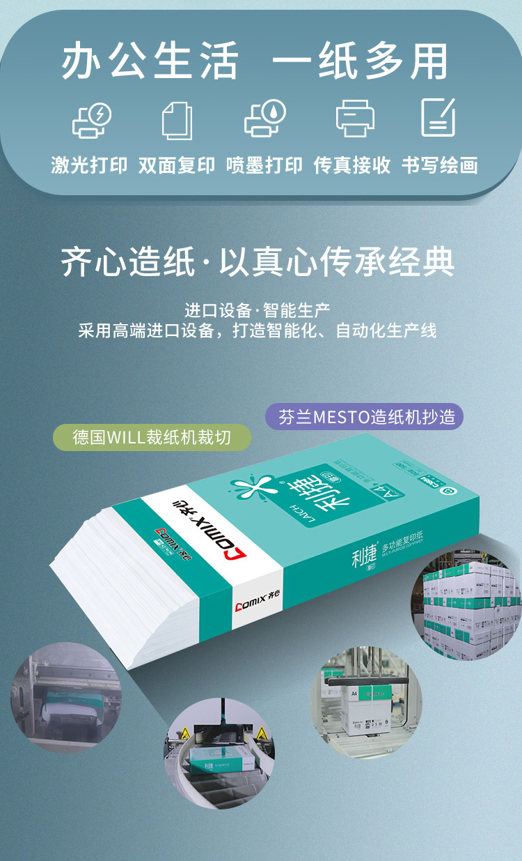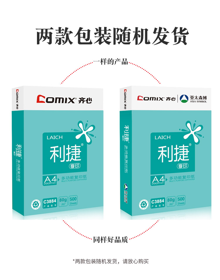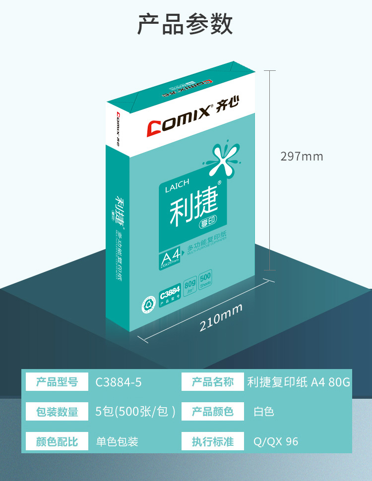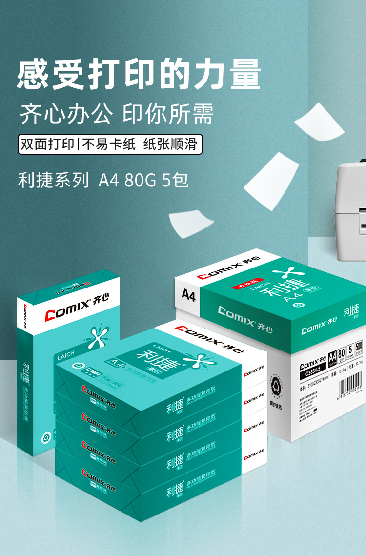 齐心(Comix)利捷 80g A4 复印纸 500张/包 5包/箱(2500张) C3884-5