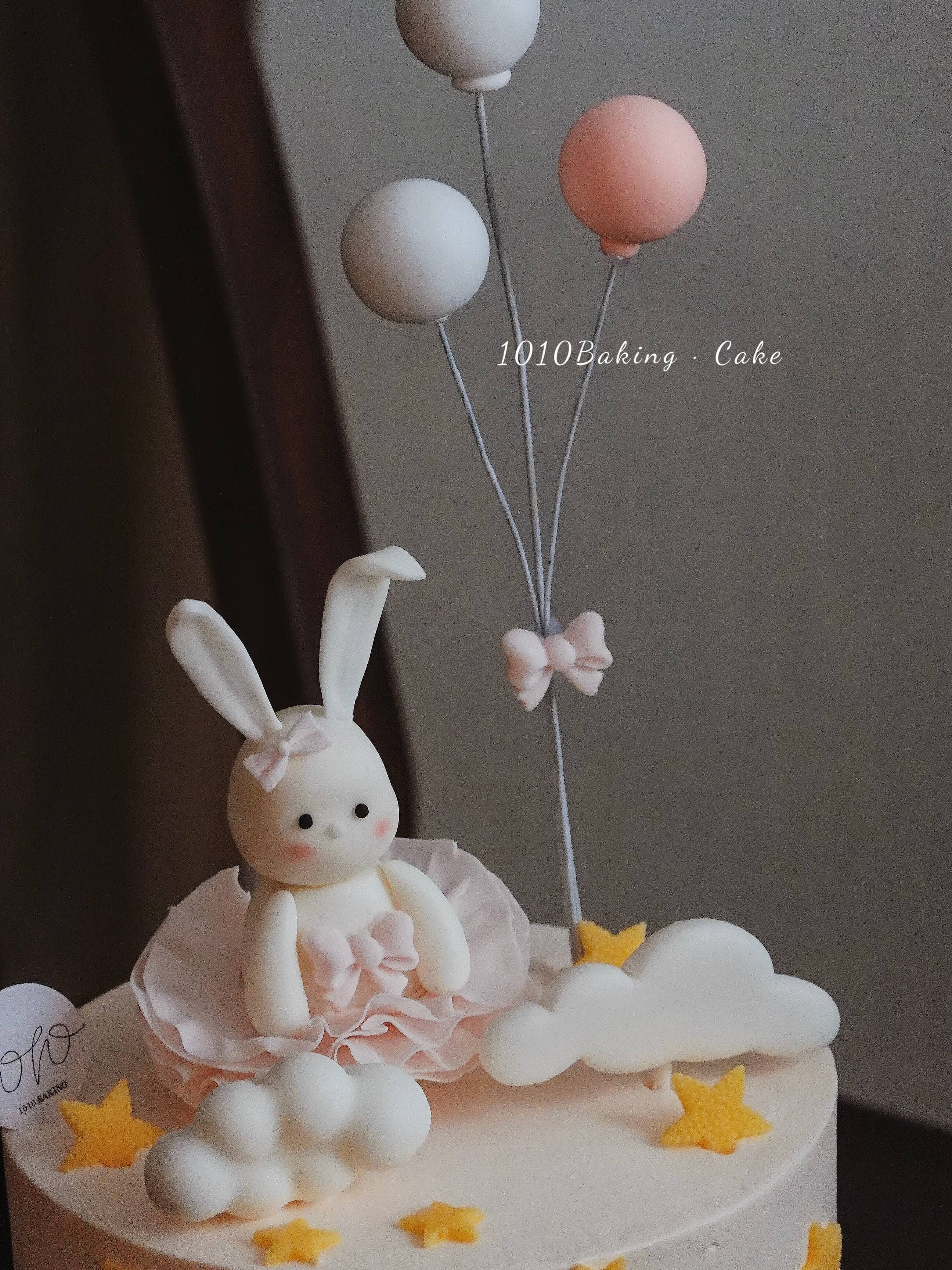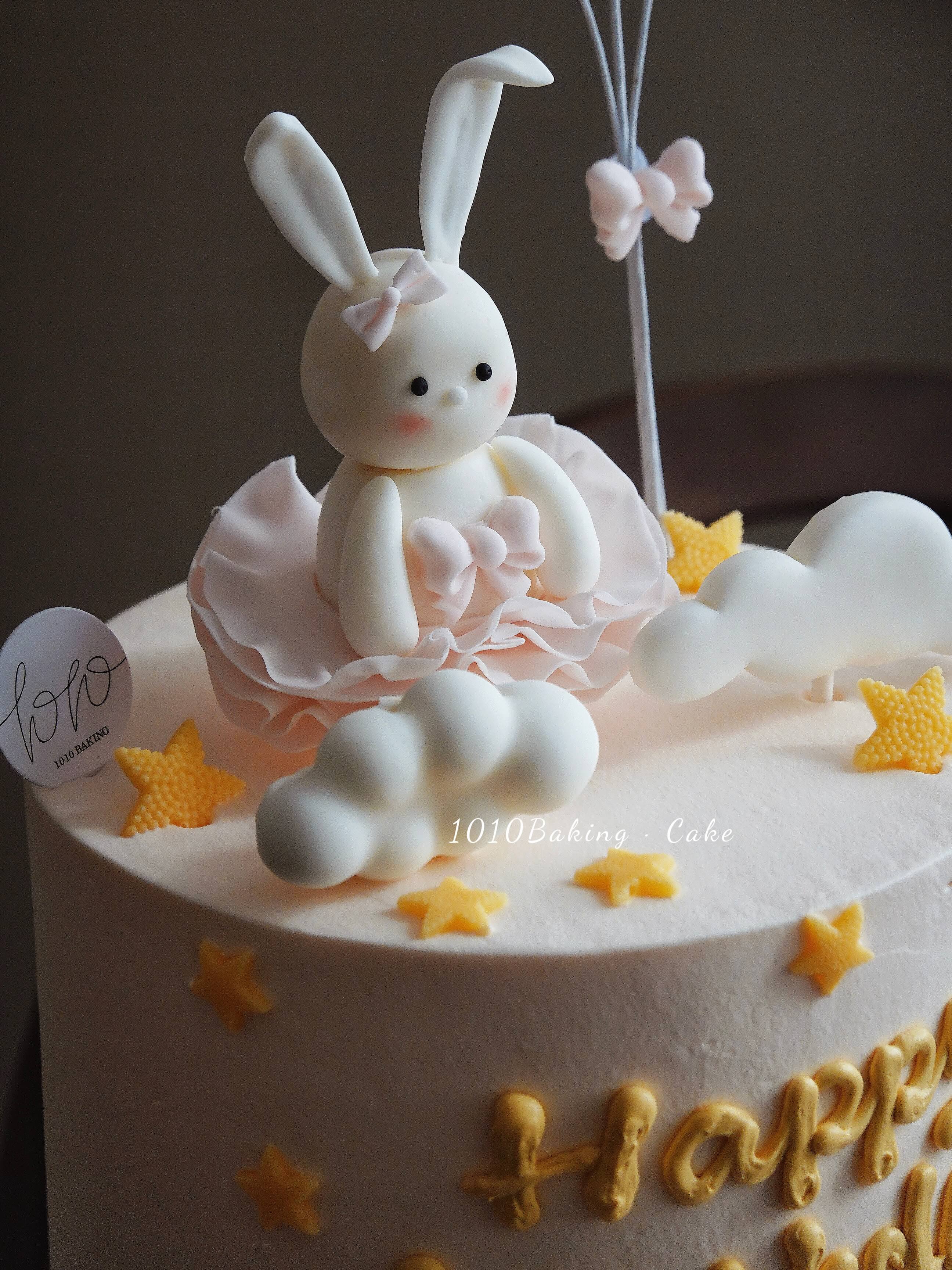 「小兔子·萌萌兔公主」岁数可改·周岁生肖·翻糖巧克力·100%动物奶油(附图5寸超高·提前7天预订)