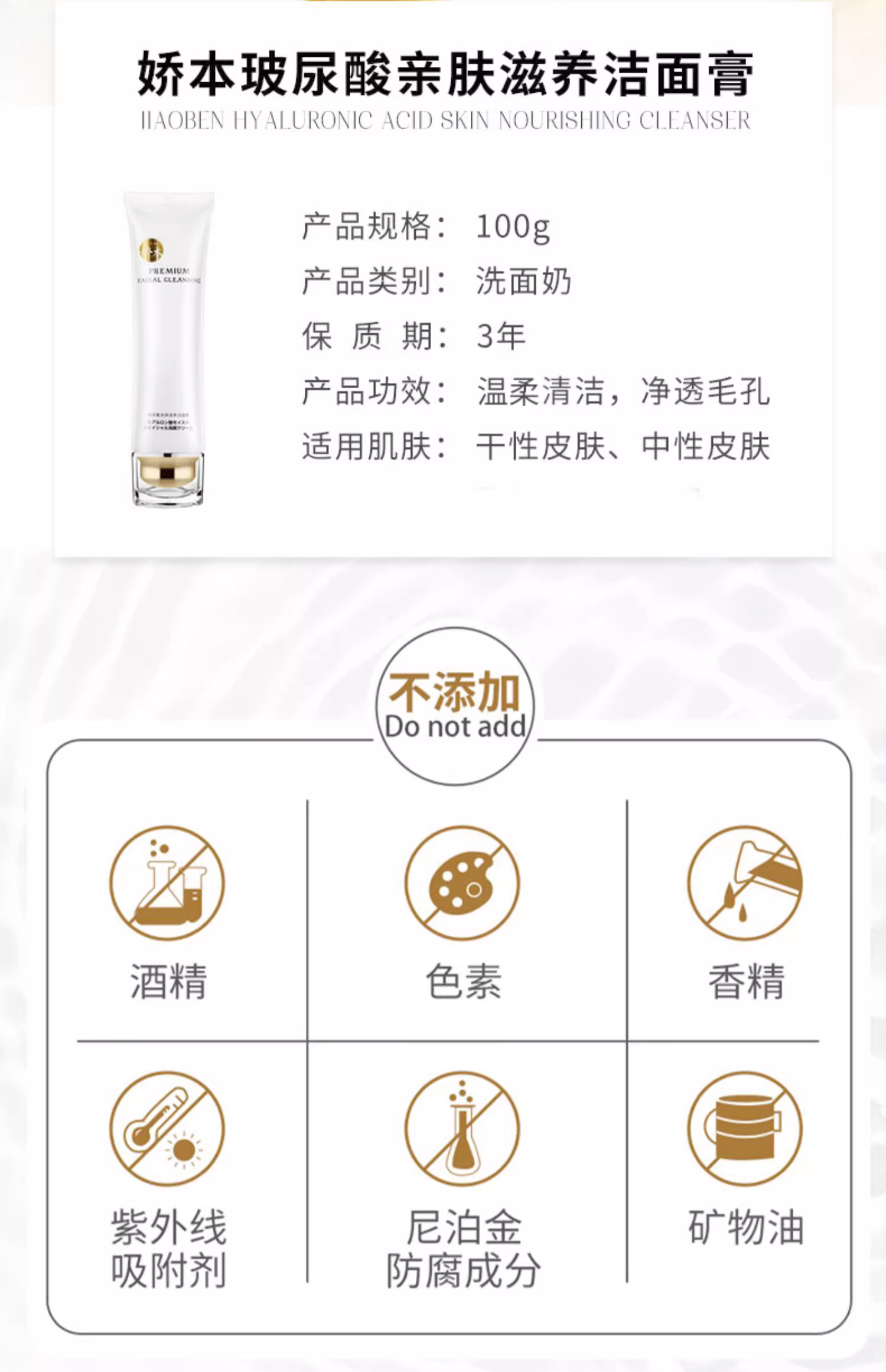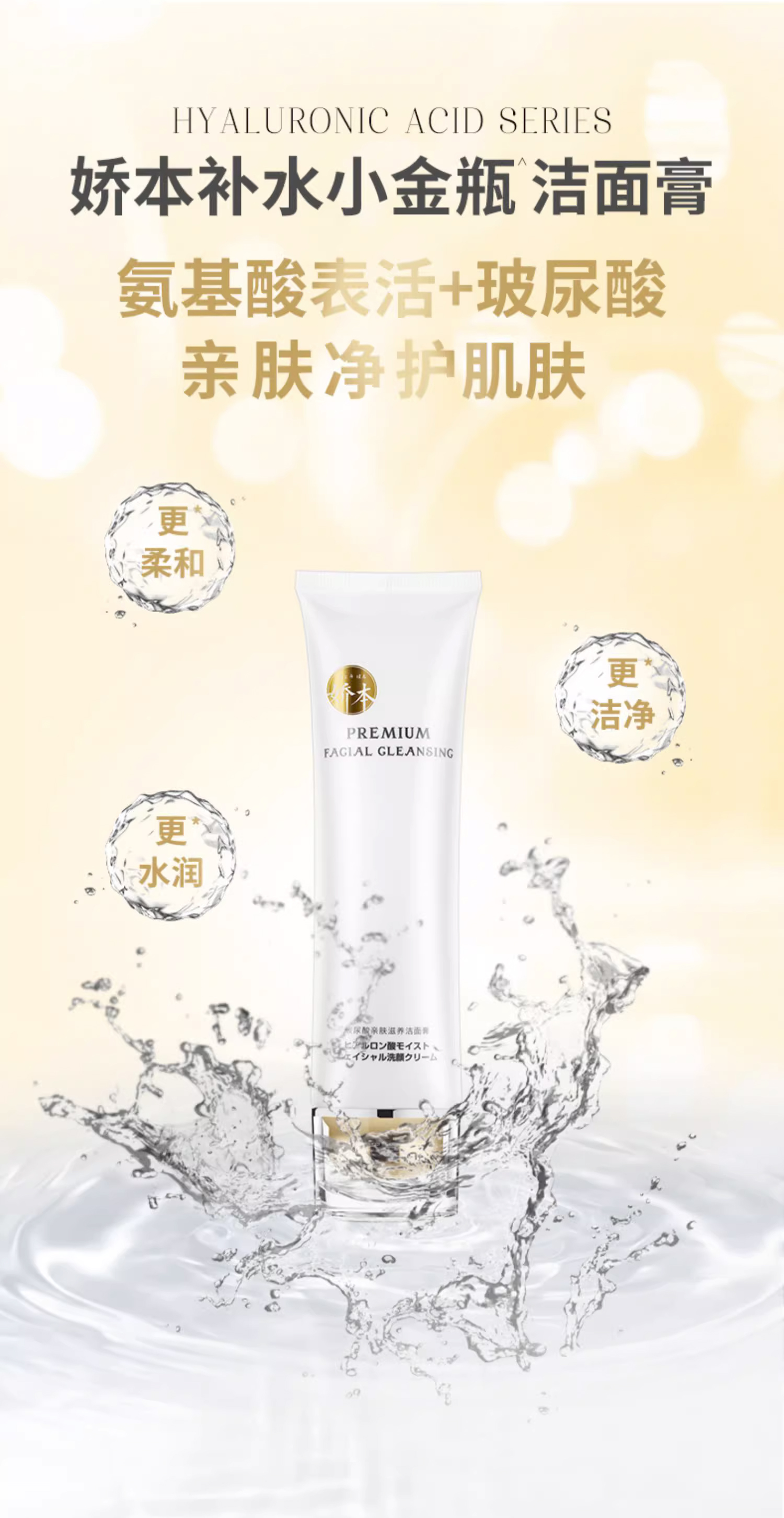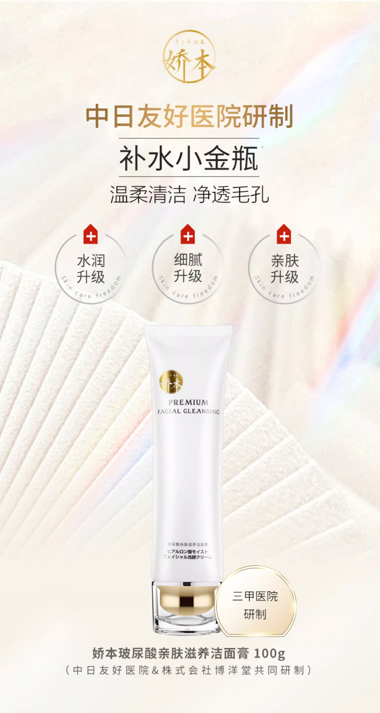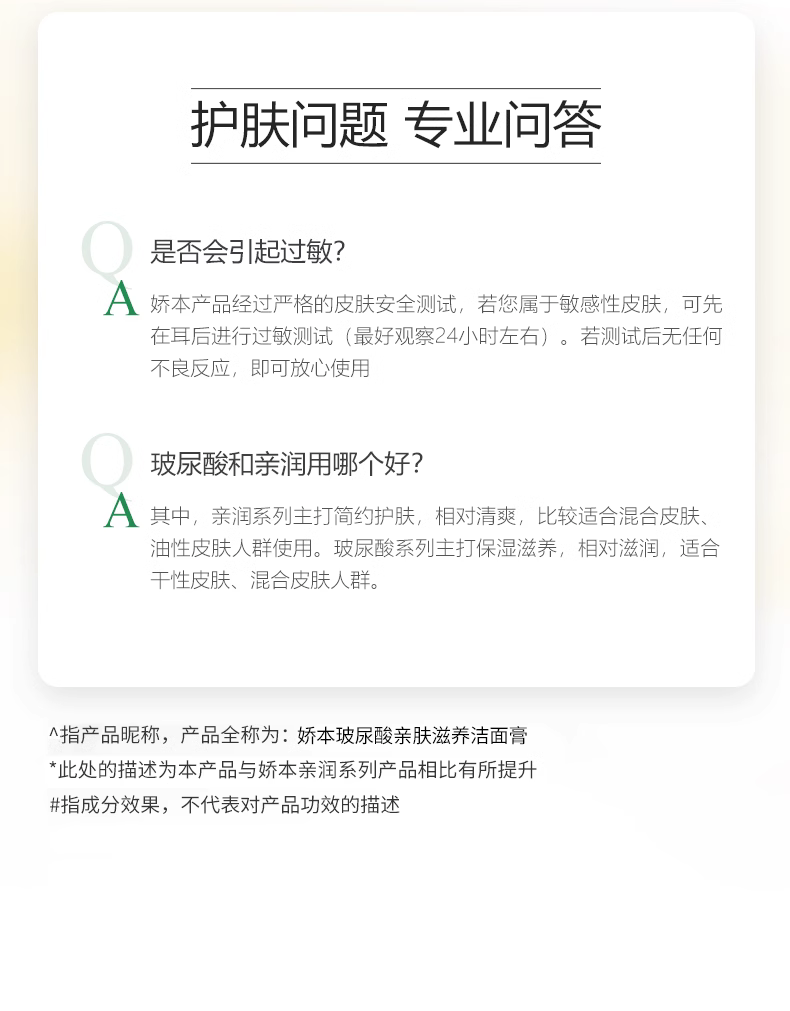 【中日友好医院研制 温和净肤】娇本玻尿酸亲肤滋养洁面膏 100g 毛孔级洗脸 保shi 玻尿酸+氨基酸