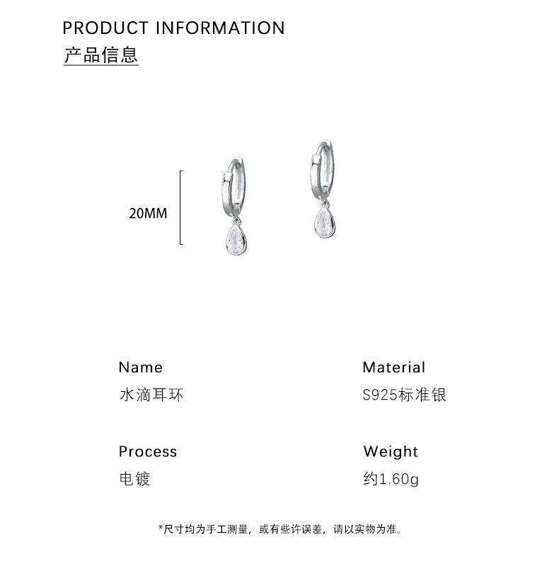 【梦洁】子佩集S925纯银水滴形锆石耳饰【ZYXS-E2549】2208