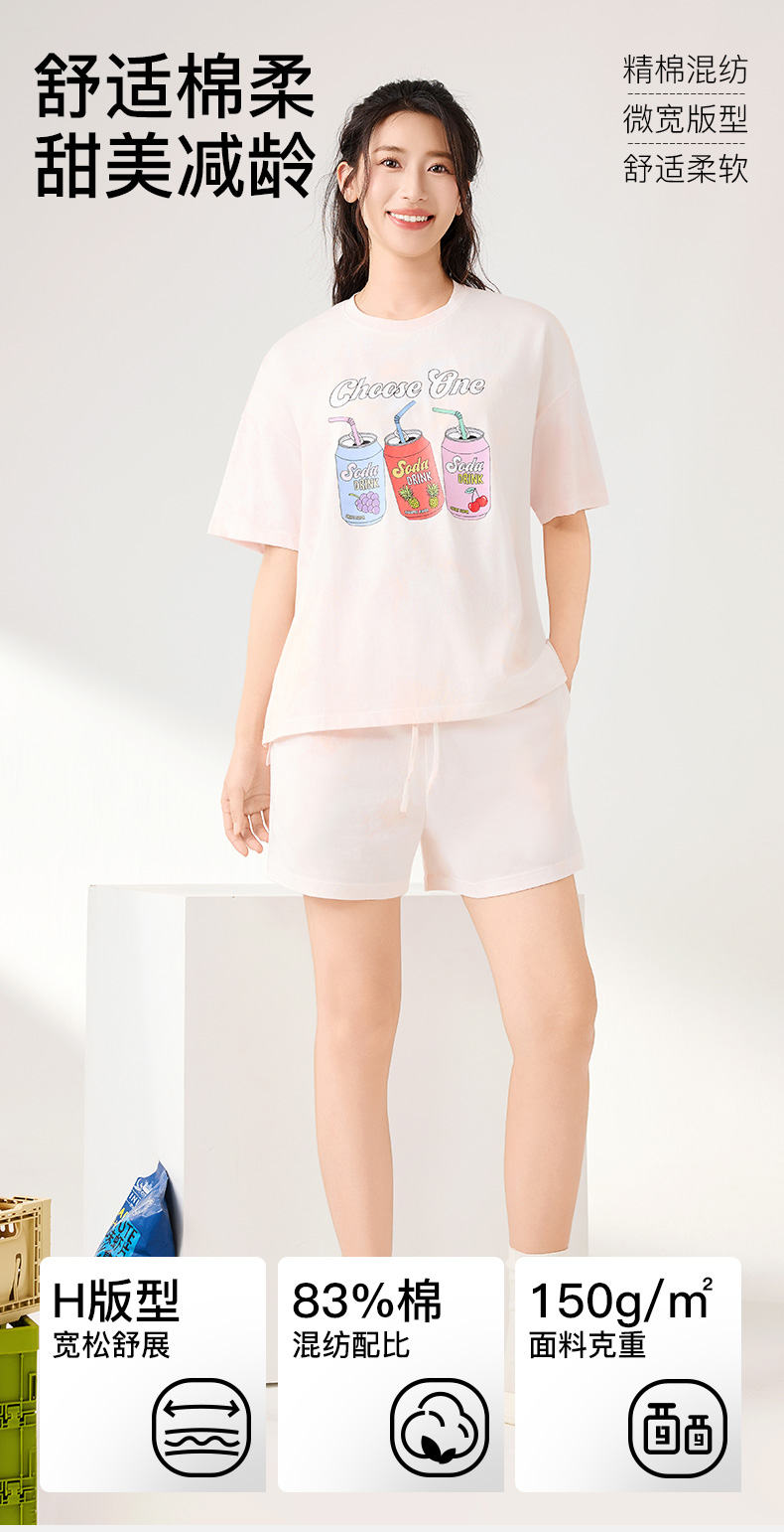 I‘d爱帝男士全棉拼色休闲圆领短袖五分裤家居套