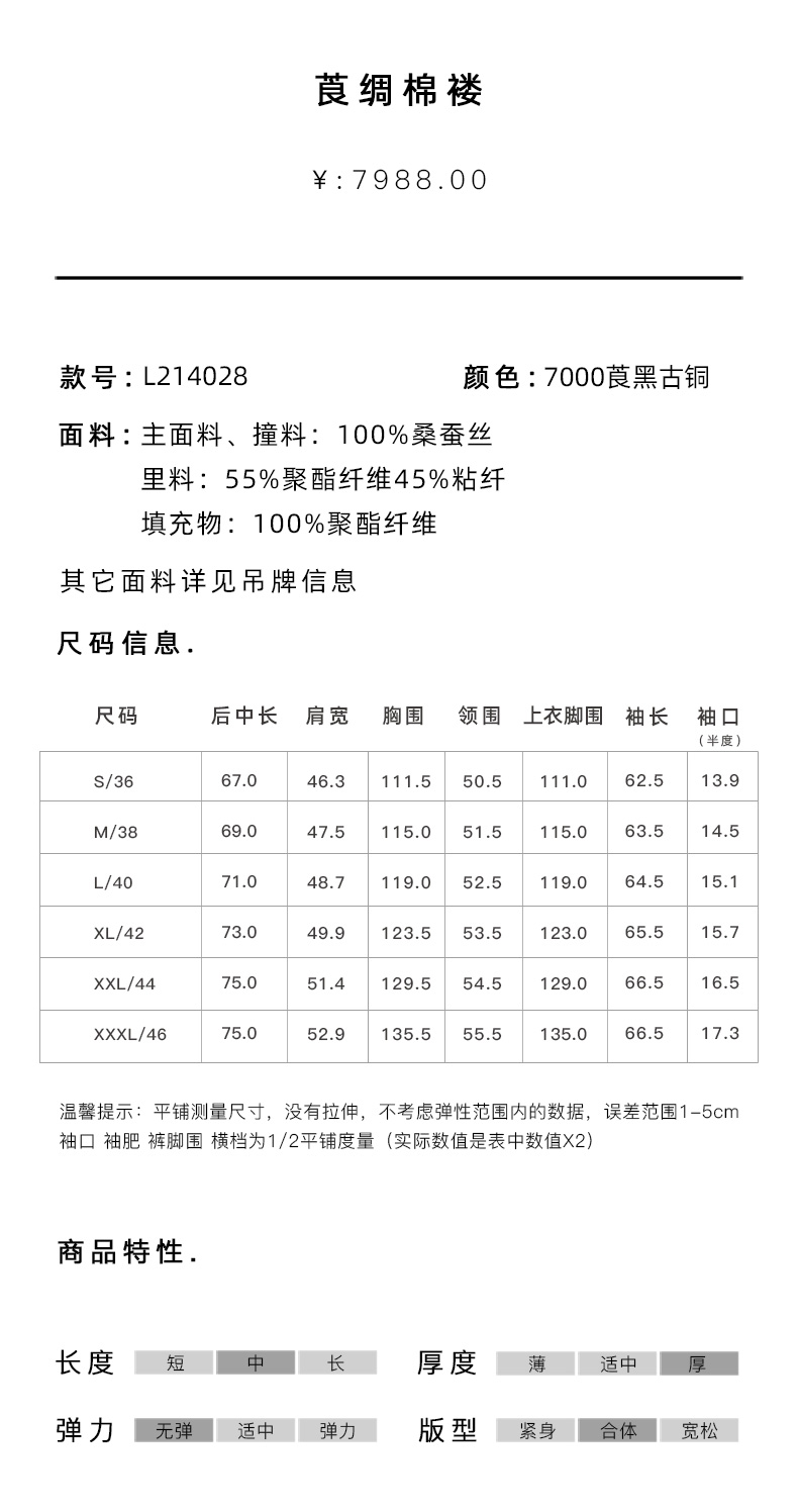 TANGY Collection/天意精品2021年秋冬新品经典立领男士莨绸棉服