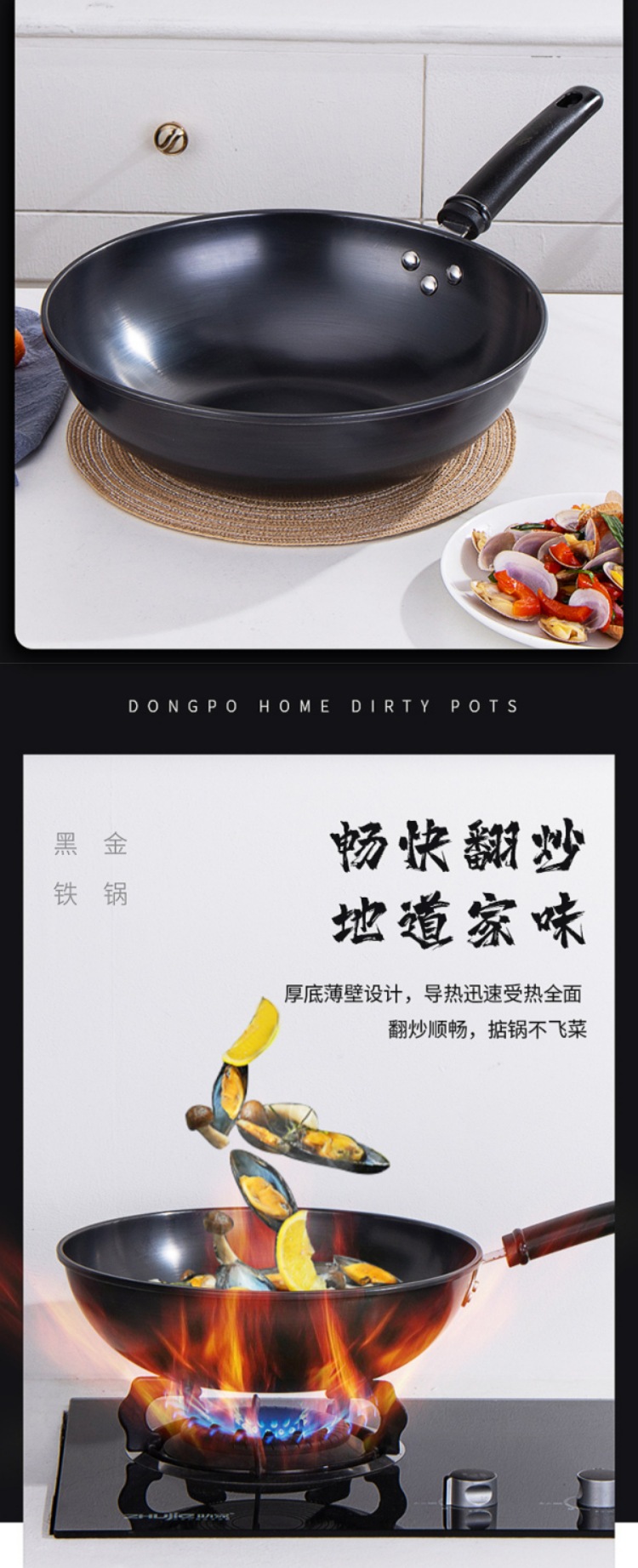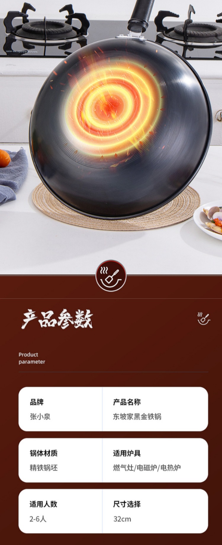 张小泉东坡家黑金铁锅C30620100