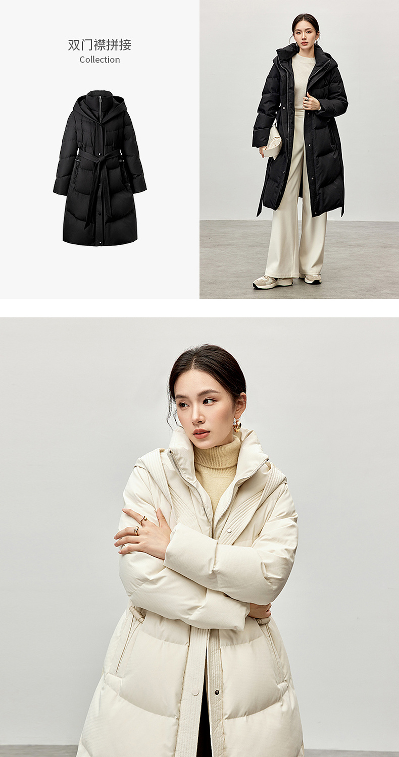 【内购】冬季长款白鸭绒加厚保暖宽松廓形外套拼接羽绒服-W44Y57030