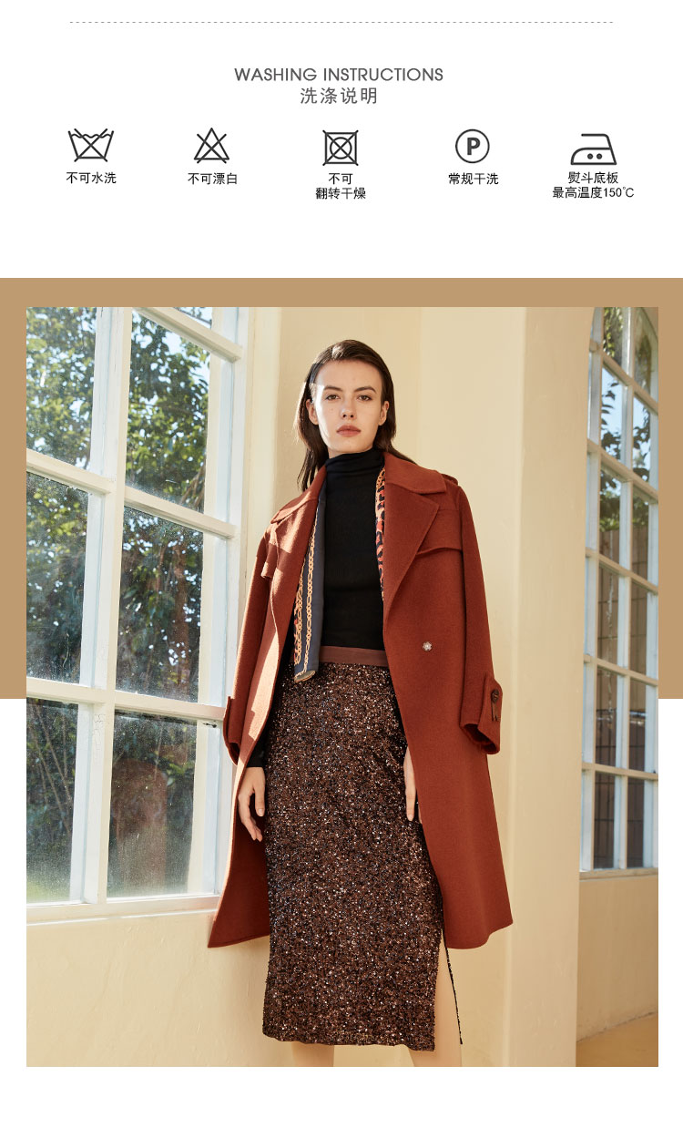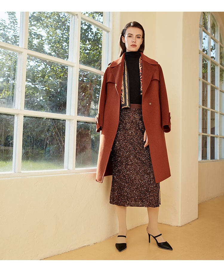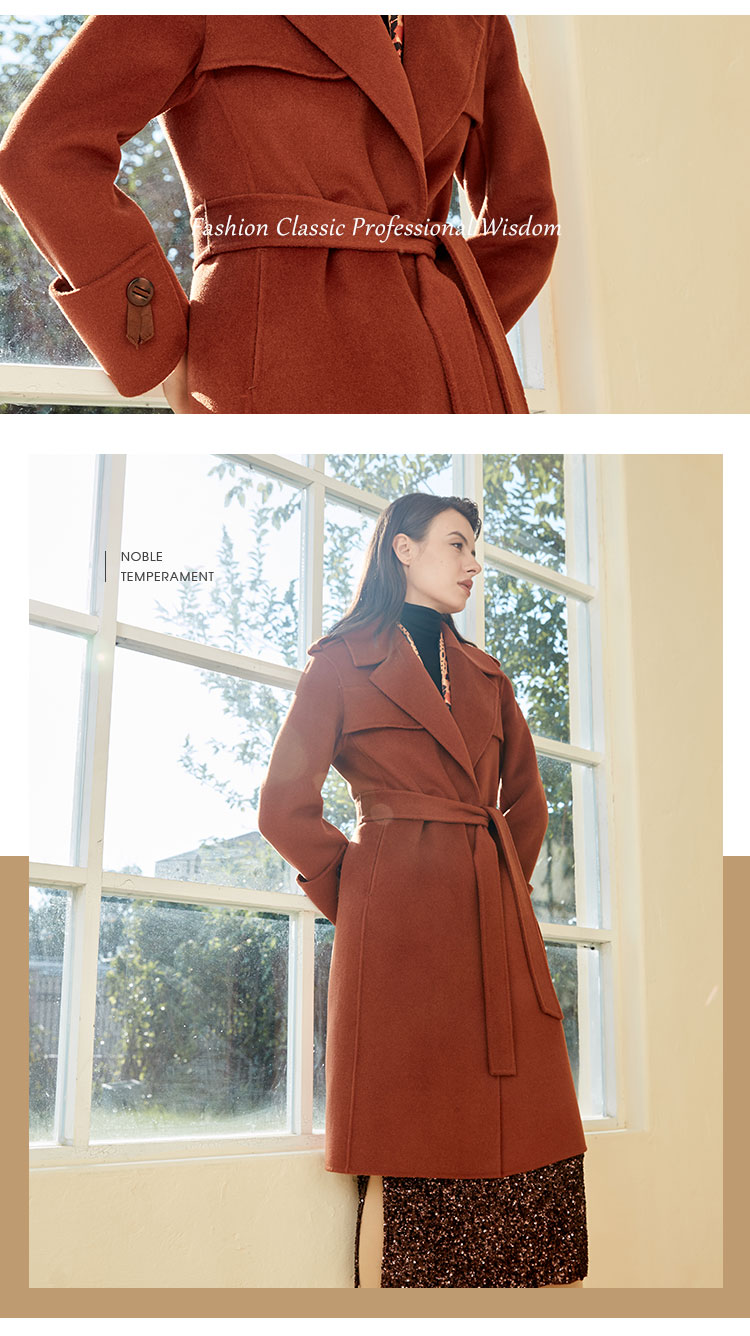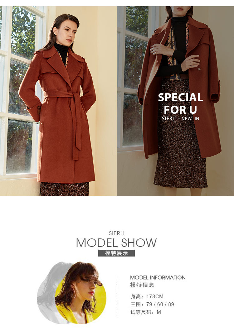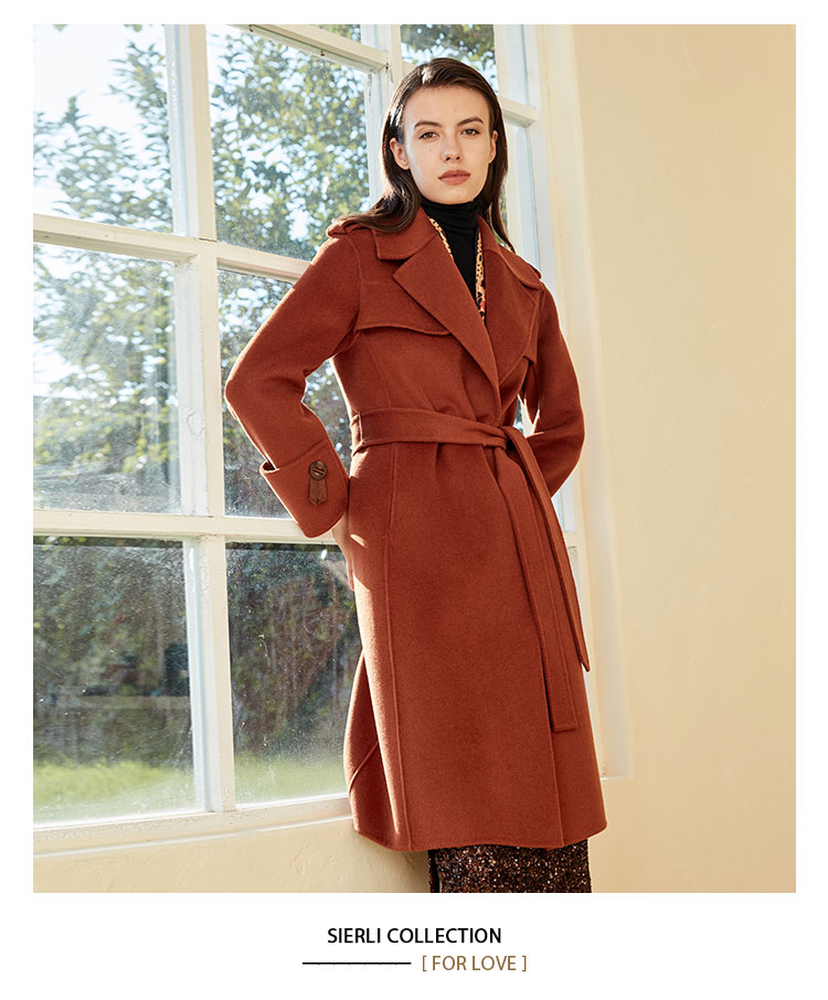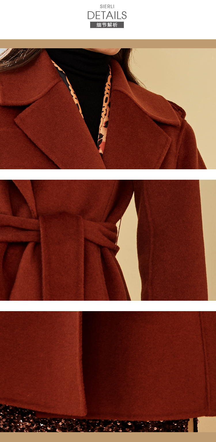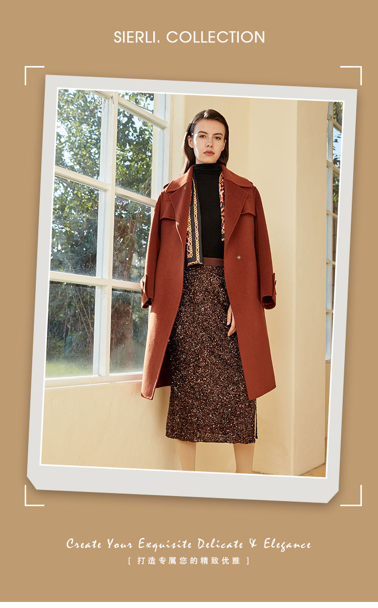 ND92T斯尔丽瑟俪2020年冬季新品翻领时尚修身中长女士毛呢大衣
