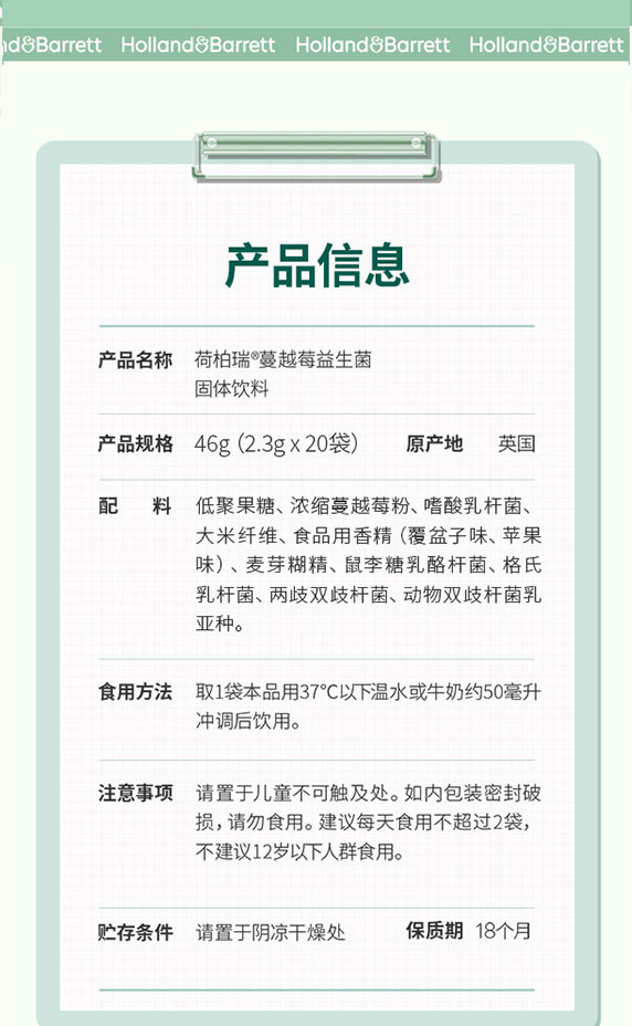 【叼健康】【快递发货】买1送1英国荷柏瑞蔓越莓益生菌固体饮料/1罐(2.3g*20小包)生产日期:24年12月