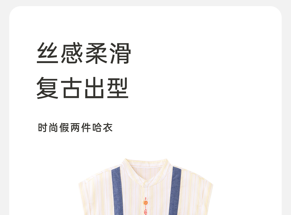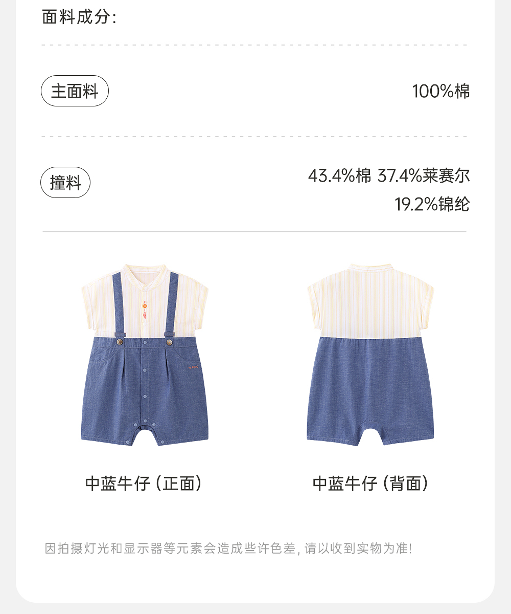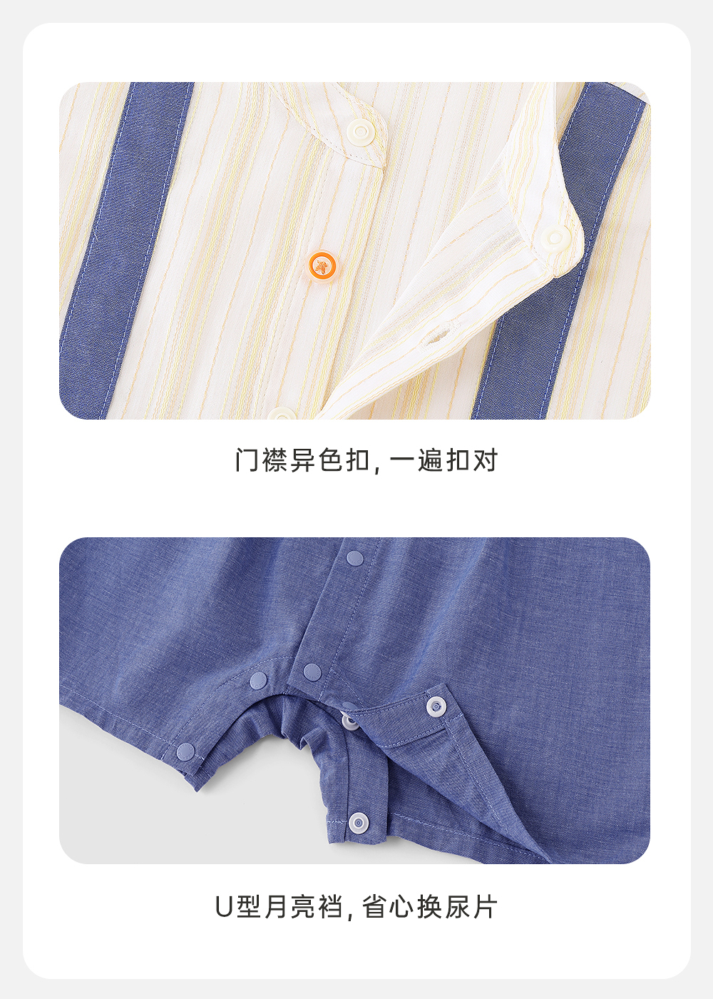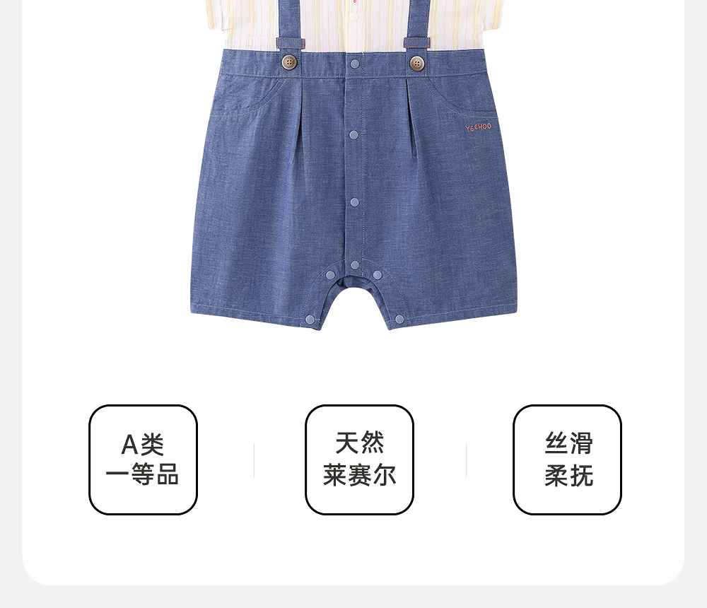 英氏婴儿衣服夏季短袖透气男宝宝外出服假两件连体衣YRHBJ2R031A