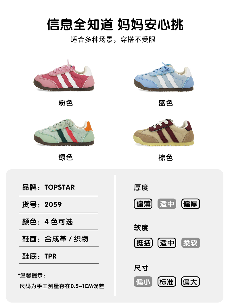 严选 | TOPSTAR秋季新款软底儿童运动鞋 粉色 蓝色 绿色 棕色 四种颜色可选 2059