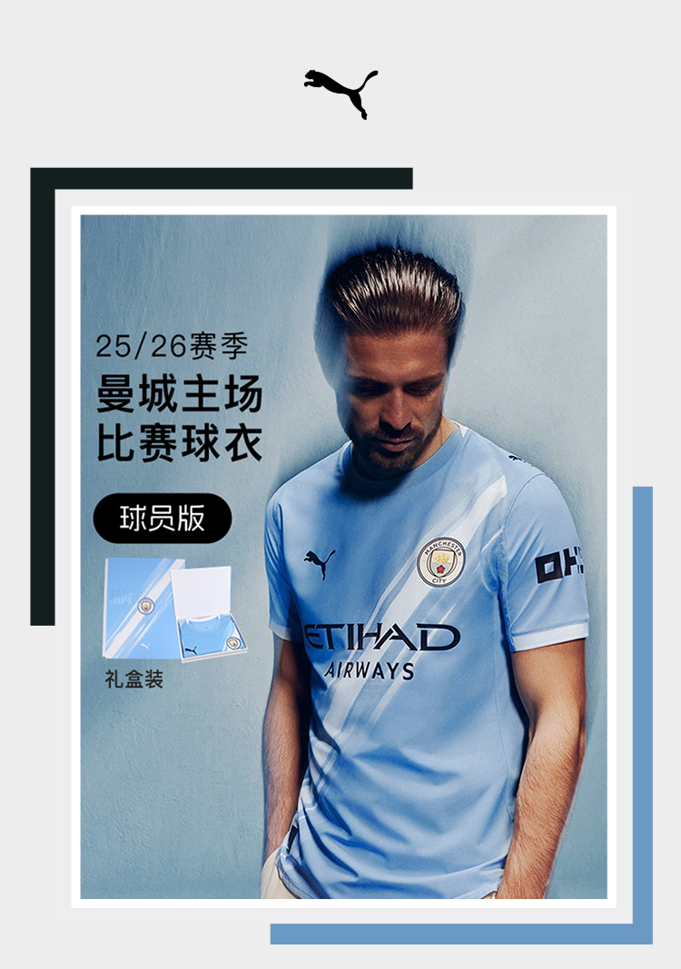 小李子PUMA彪马25-26赛季曼城主场球员版短袖球衣成人男780792 01
