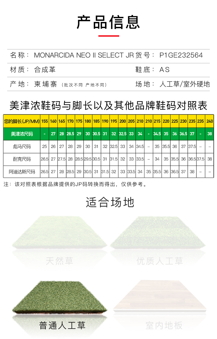 Mizuno/美津浓MONARCIDA NEO 2 SELECT中端AS碎钉青少年足球鞋男P1GE232564