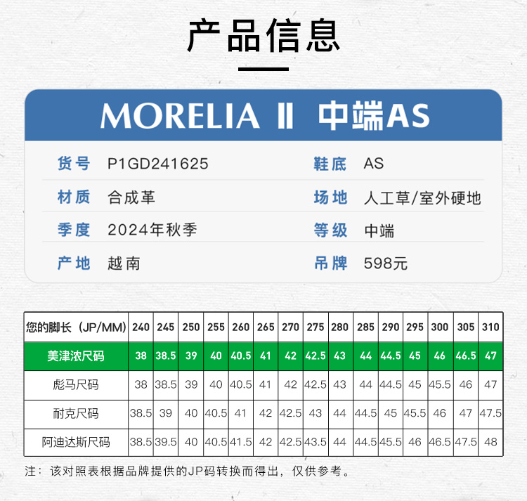 小李子Mizuno美津浓莫雷拉MORELIA 2中端AS碎钉成人比赛足球鞋男