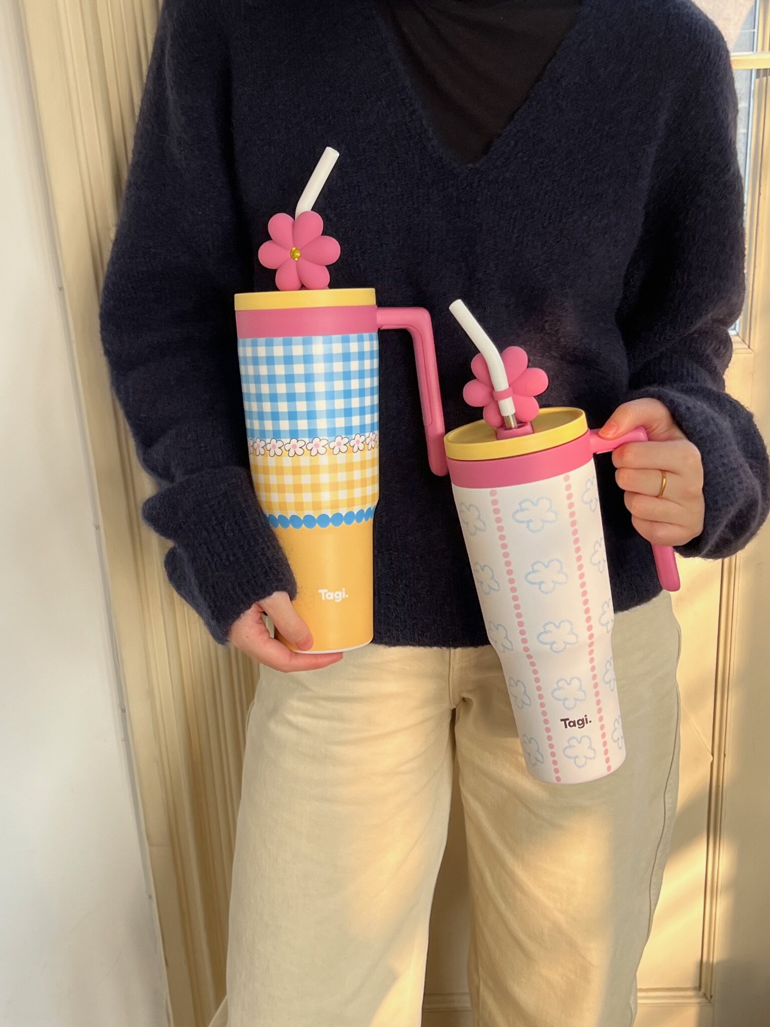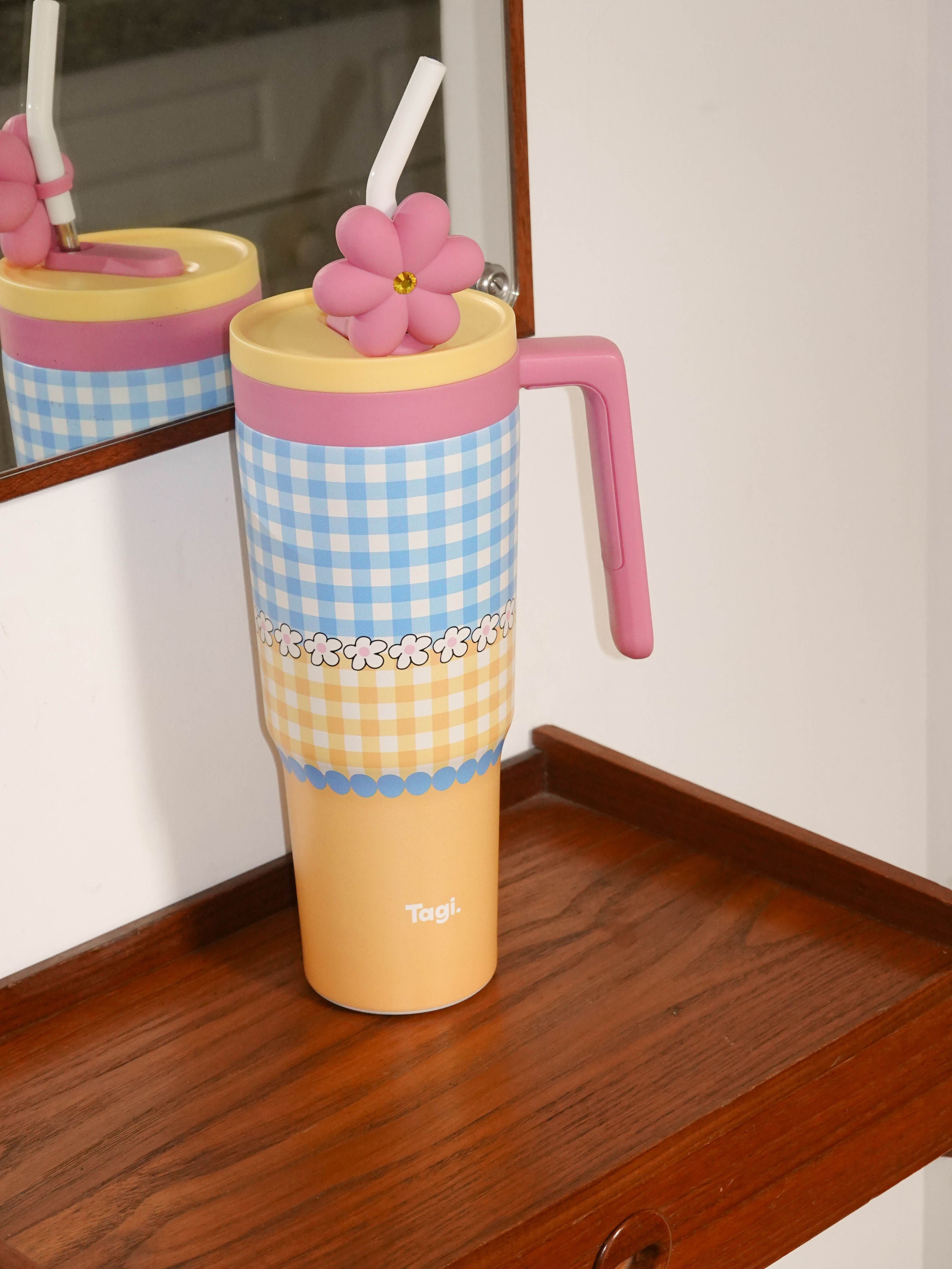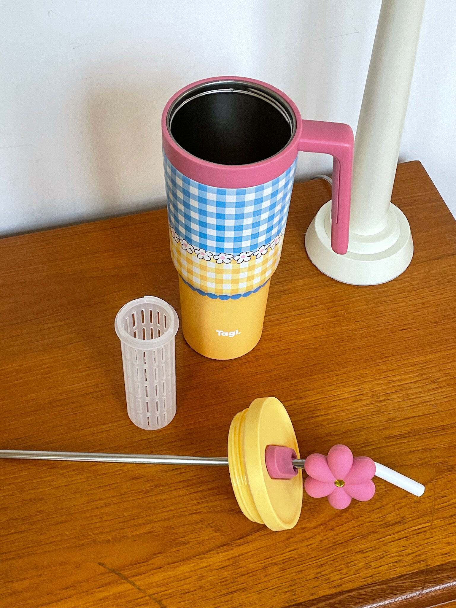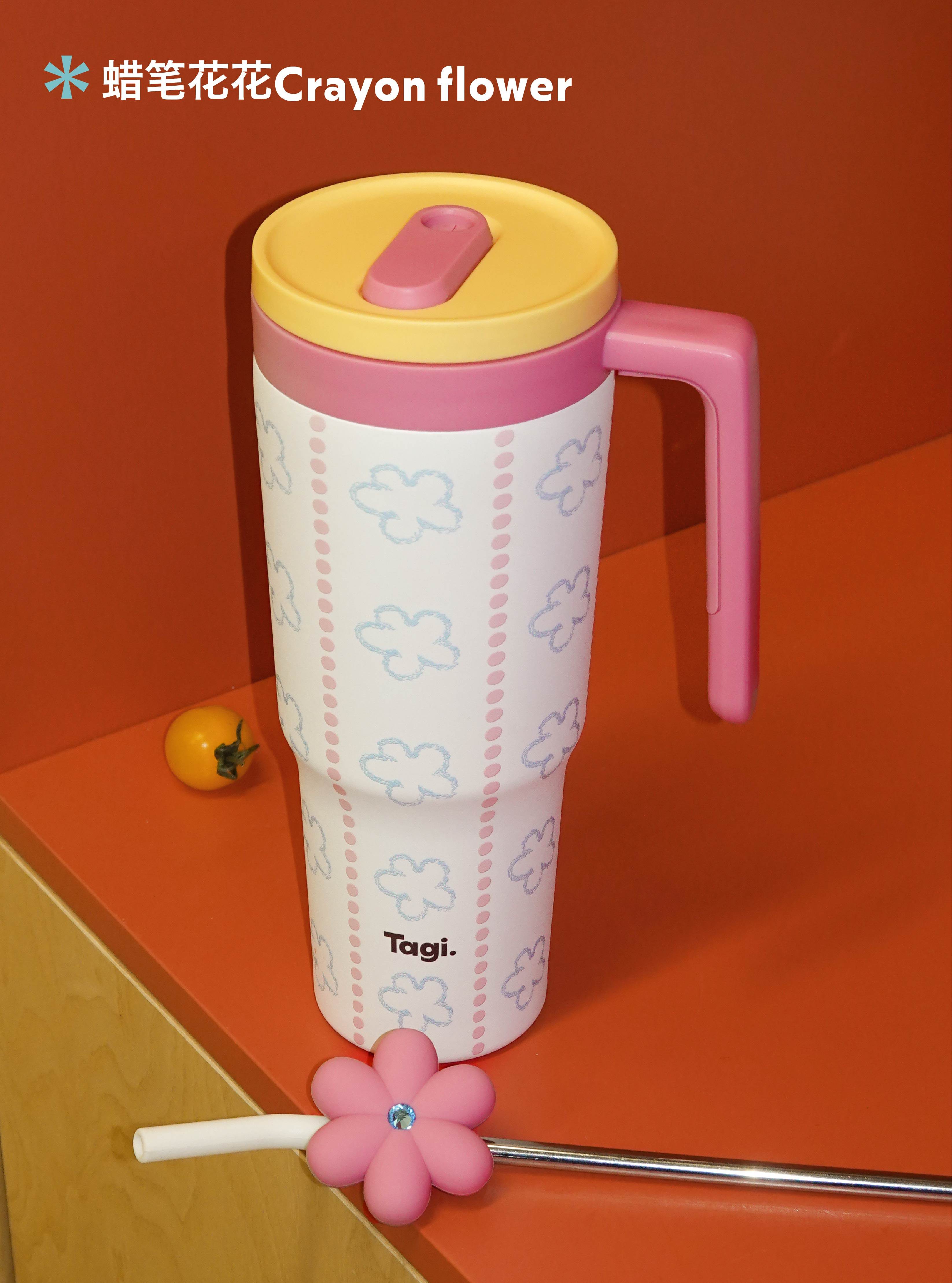 Tagi 怦怦花田钻石吨吨杯 大容量车载保温杯冰霸杯吸管杯