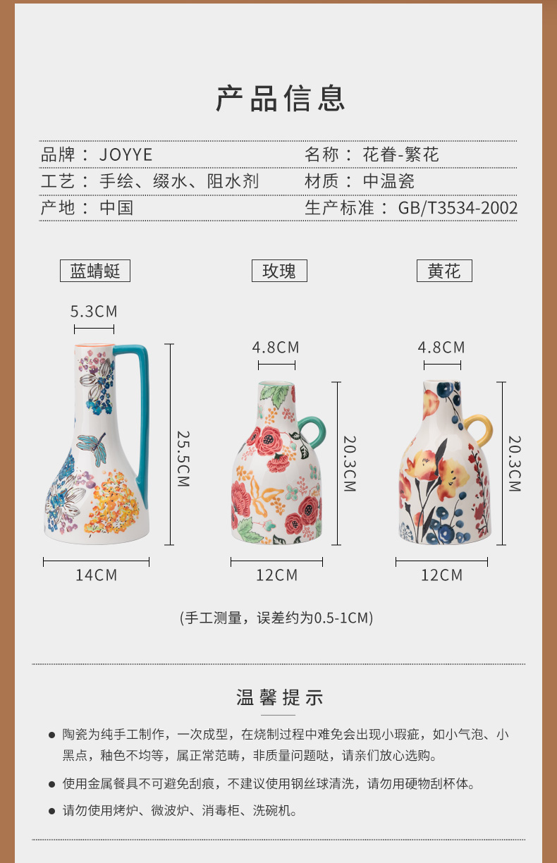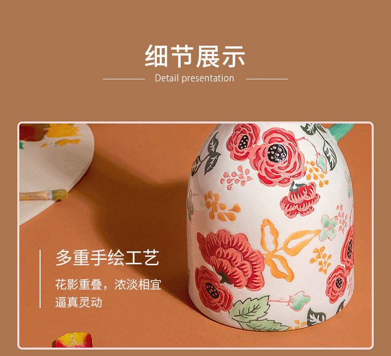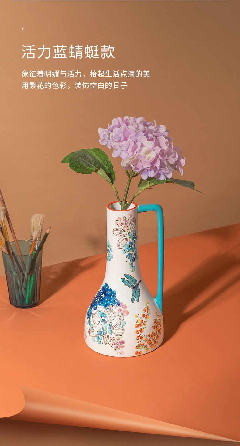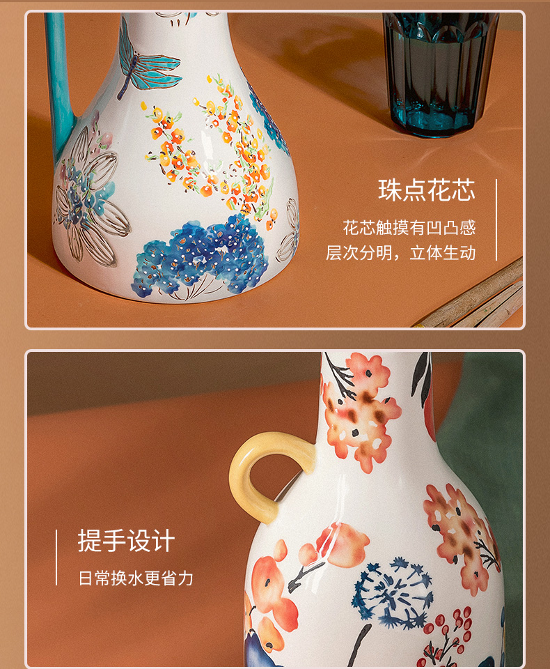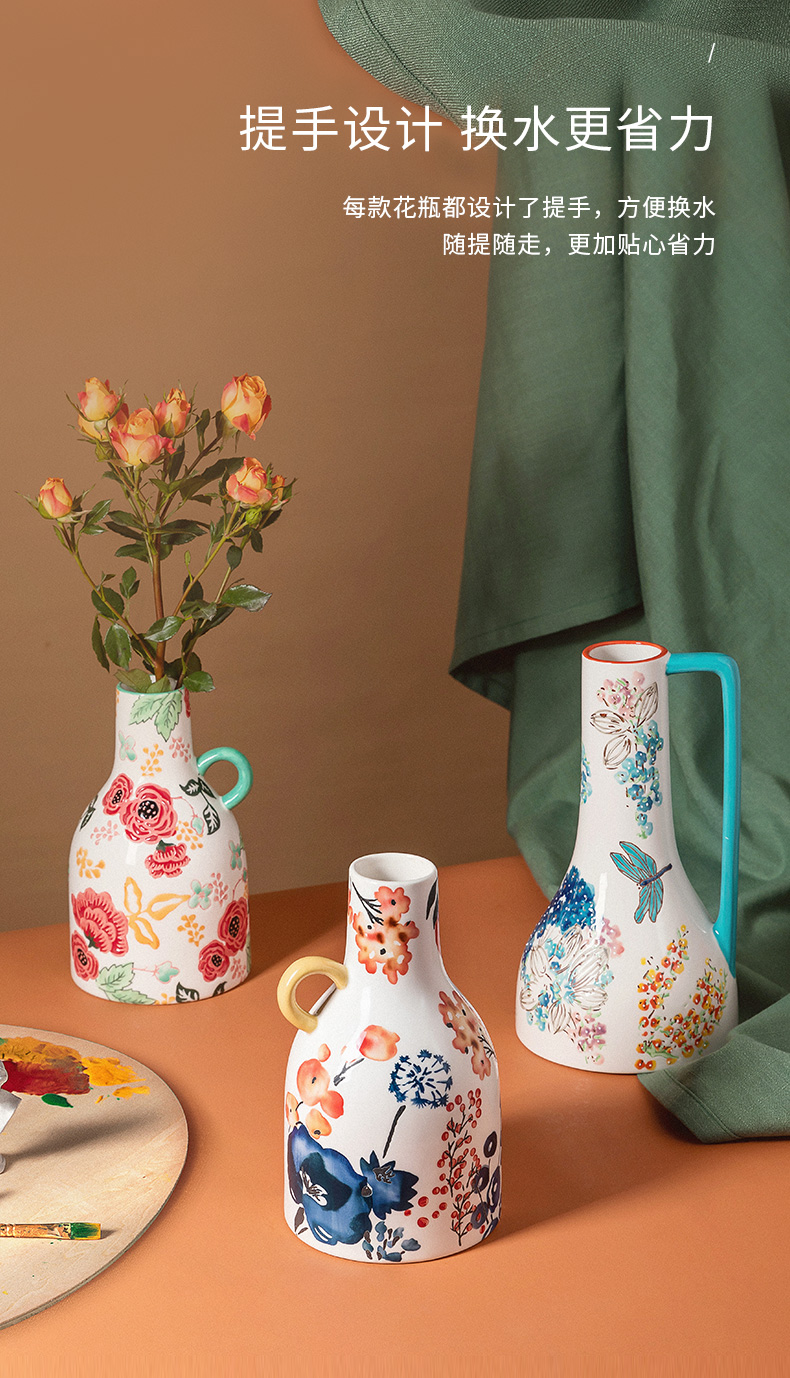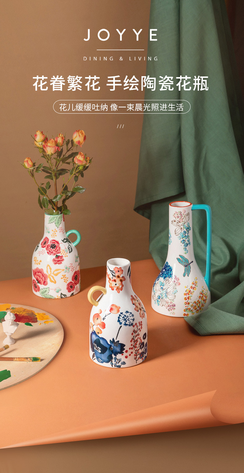JOYYE卓艺花眷-繁花大花瓶TFV0119251北欧手绘陶瓷摆件网红花瓶ins客厅轻奢饰品插花干花花器
