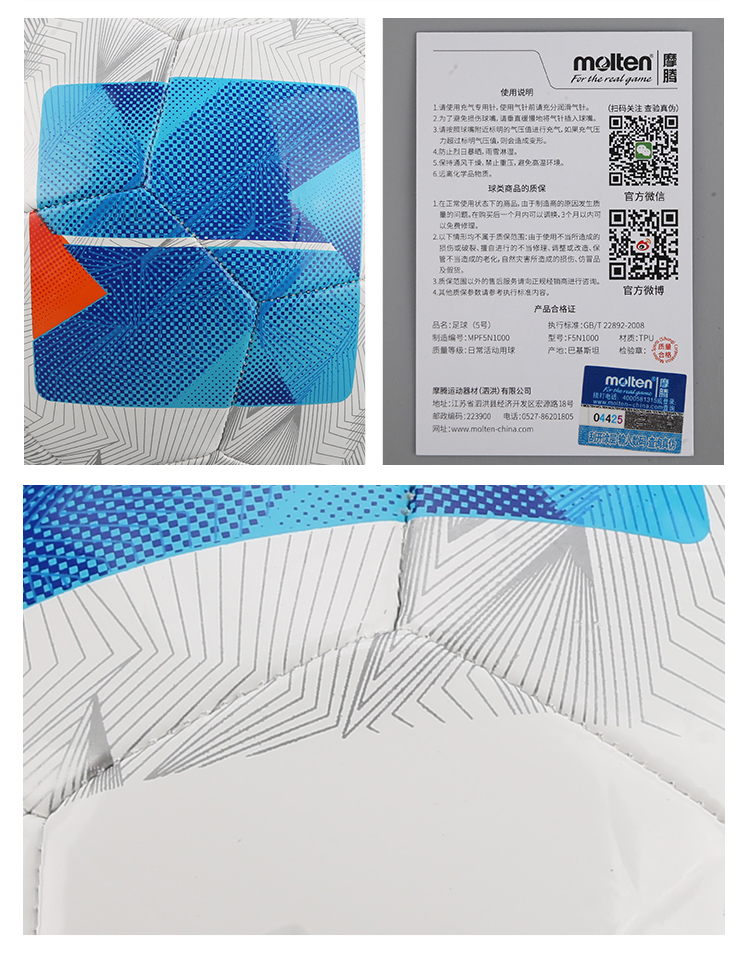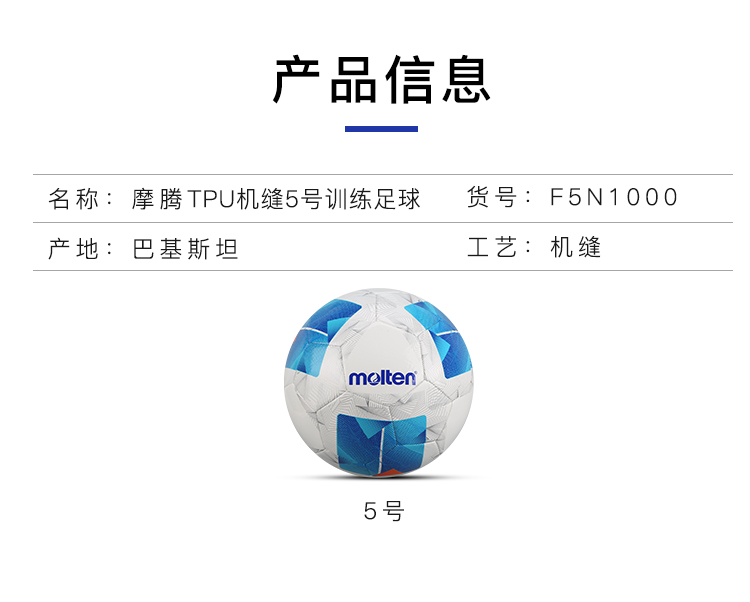 小李子Molten摩腾足球TPU机缝比赛训练5号球F5N1000