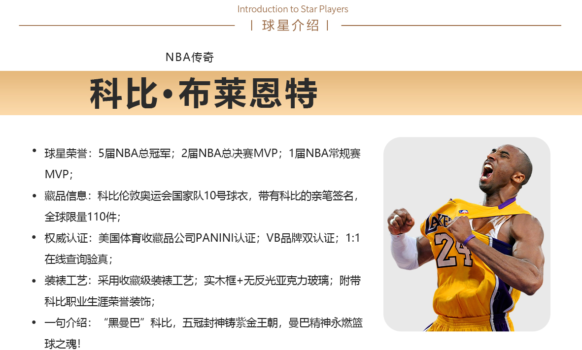 收藏系列 科比 湖人队24号黄色 球迷版 亲笔签名球衣